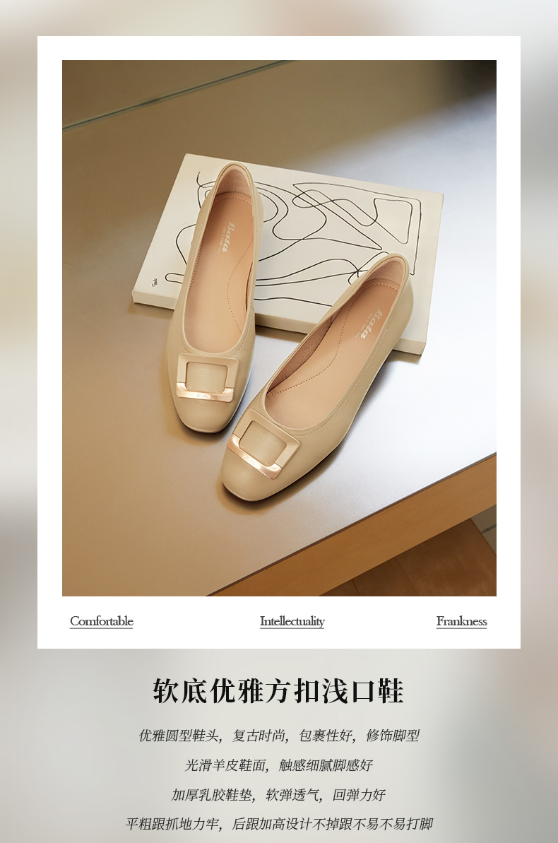 | 皮质特征:软面皮 | 前掌高度:无 | 防水台高度:无 | 鞋类流行款式:浅口鞋 |