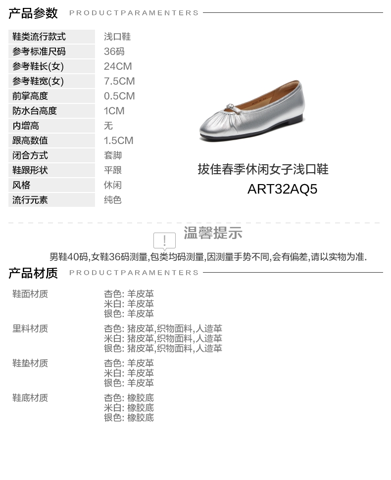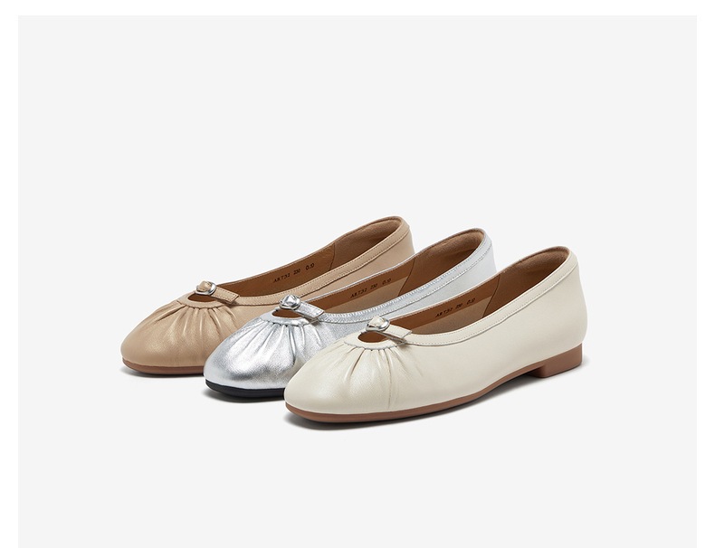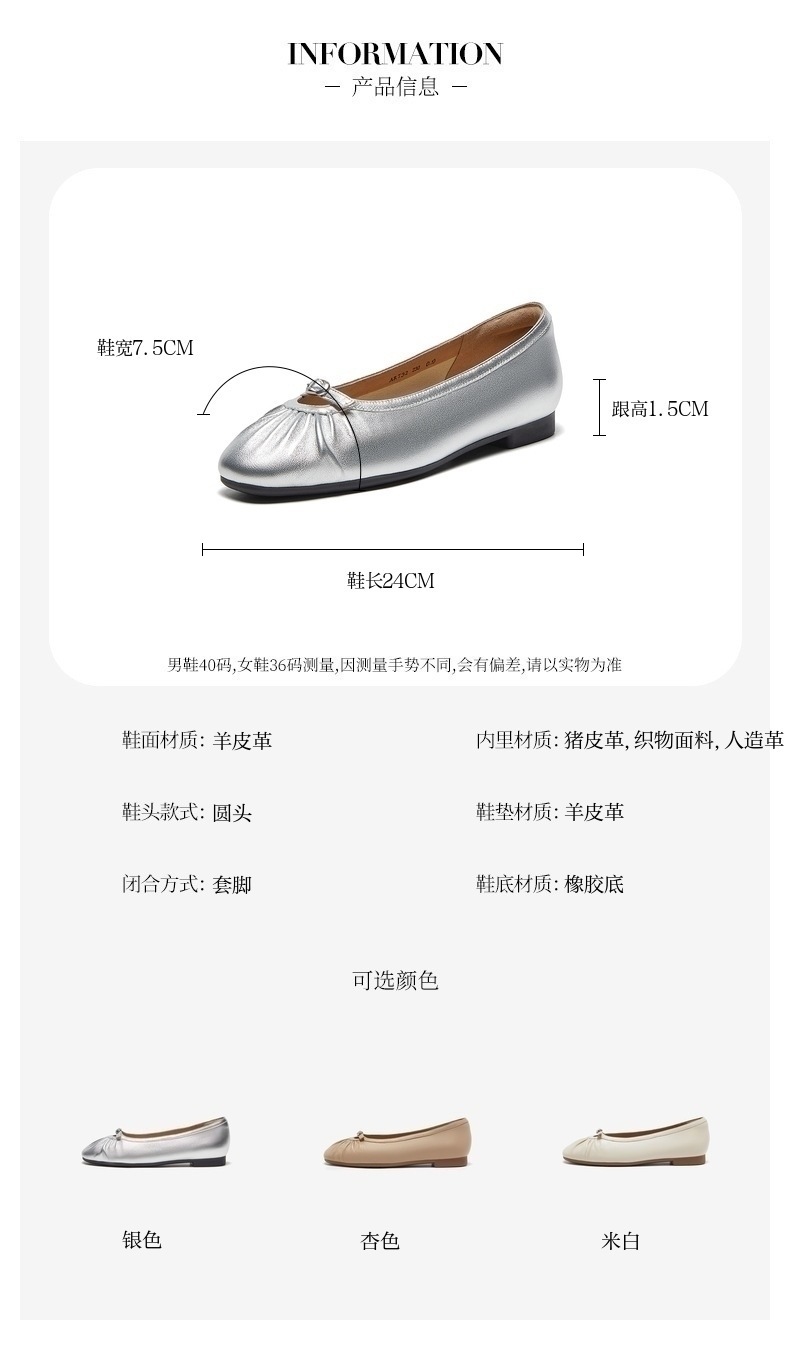 | 鞋类流行款式:浅口鞋 | 鞋头款式:圆头 | 跟高范围:低跟鞋(小于3CM) | 鞋面图案:纯色 | 鞋跟形状:平跟 |