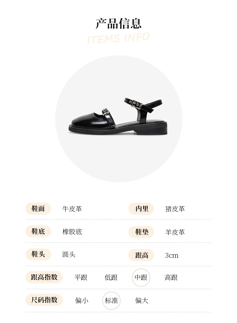| 鞋头款式:圆头 | 鞋底材质:橡胶底 | 鞋面图案:纯色 | 鞋跟形状:粗跟 | 鞋面材质:牛皮革 |