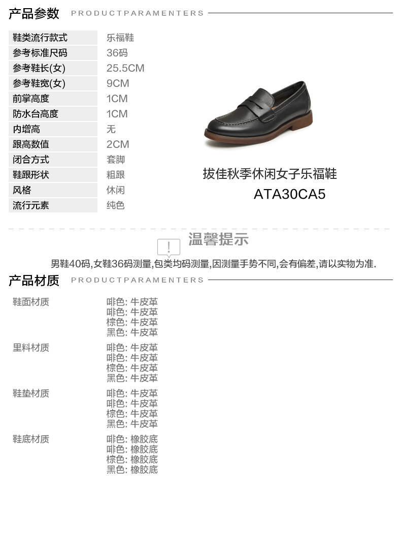 | 配跟:无 | 上市时间:2025年秋季 | 鞋类流行款式:乐福鞋 | 鞋头款式:圆头 | 鞋面图案:纯色 |