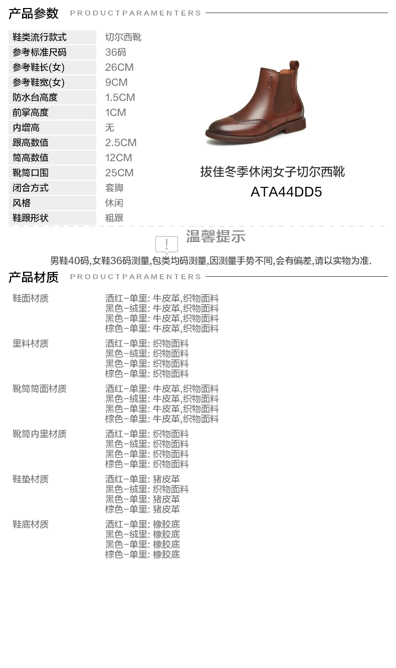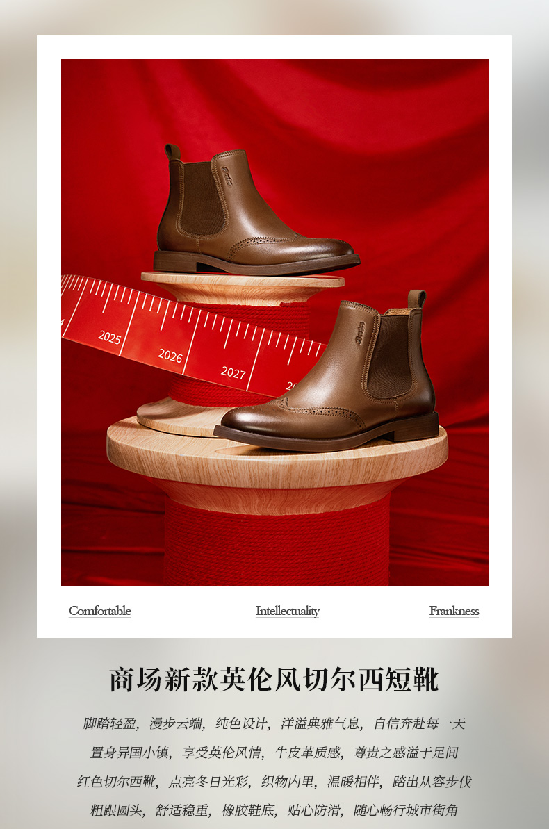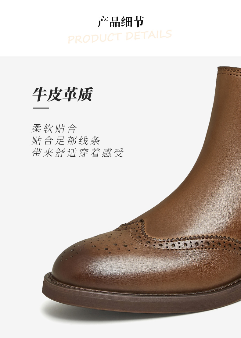 | 帮面材质:牛皮革 | 配跟:无 | 靴筒口围:25CM | 上市时间:2025年冬季 | 鞋类流行款式:切尔西靴 |
