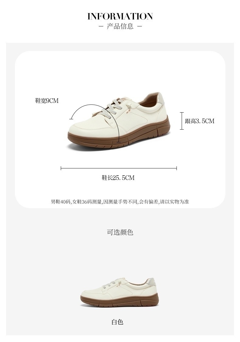 | 鞋跟形状:厚底 | 参考鞋长(女):25.5CM | 流行元素:纯色 | 参考鞋宽(女):9CM | 风格:休闲 |
