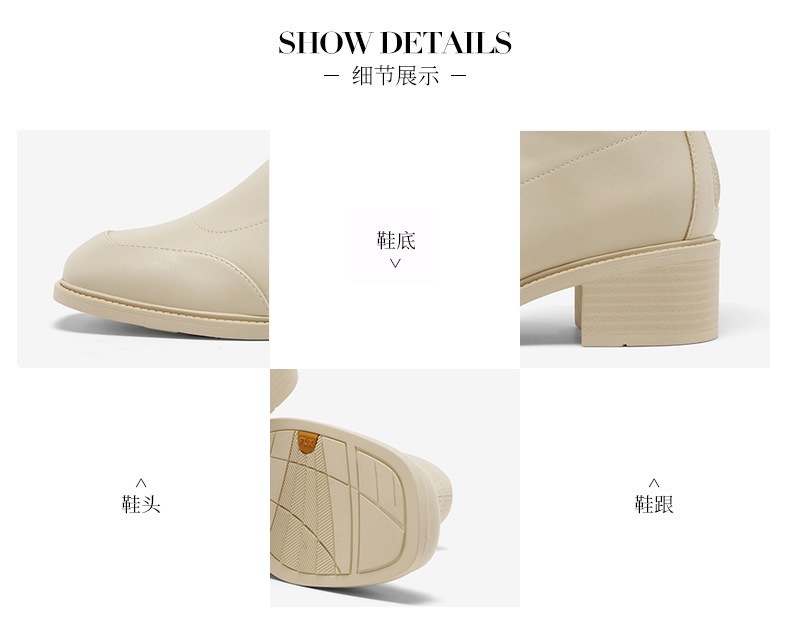 | 鞋头款式:圆头 | 鞋面图案:纯色 | 鞋跟形状:粗跟 | 参考鞋长(女):25CM | 流行元素:纯色 |