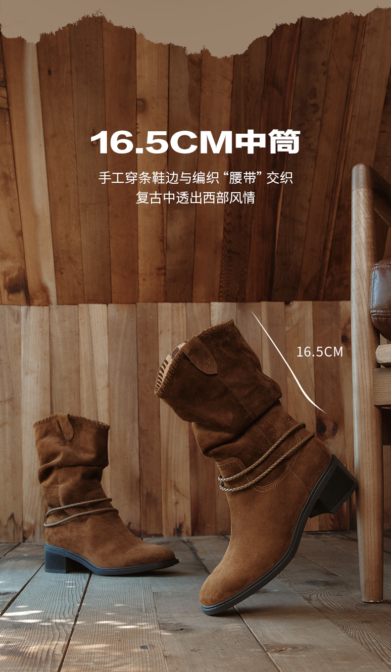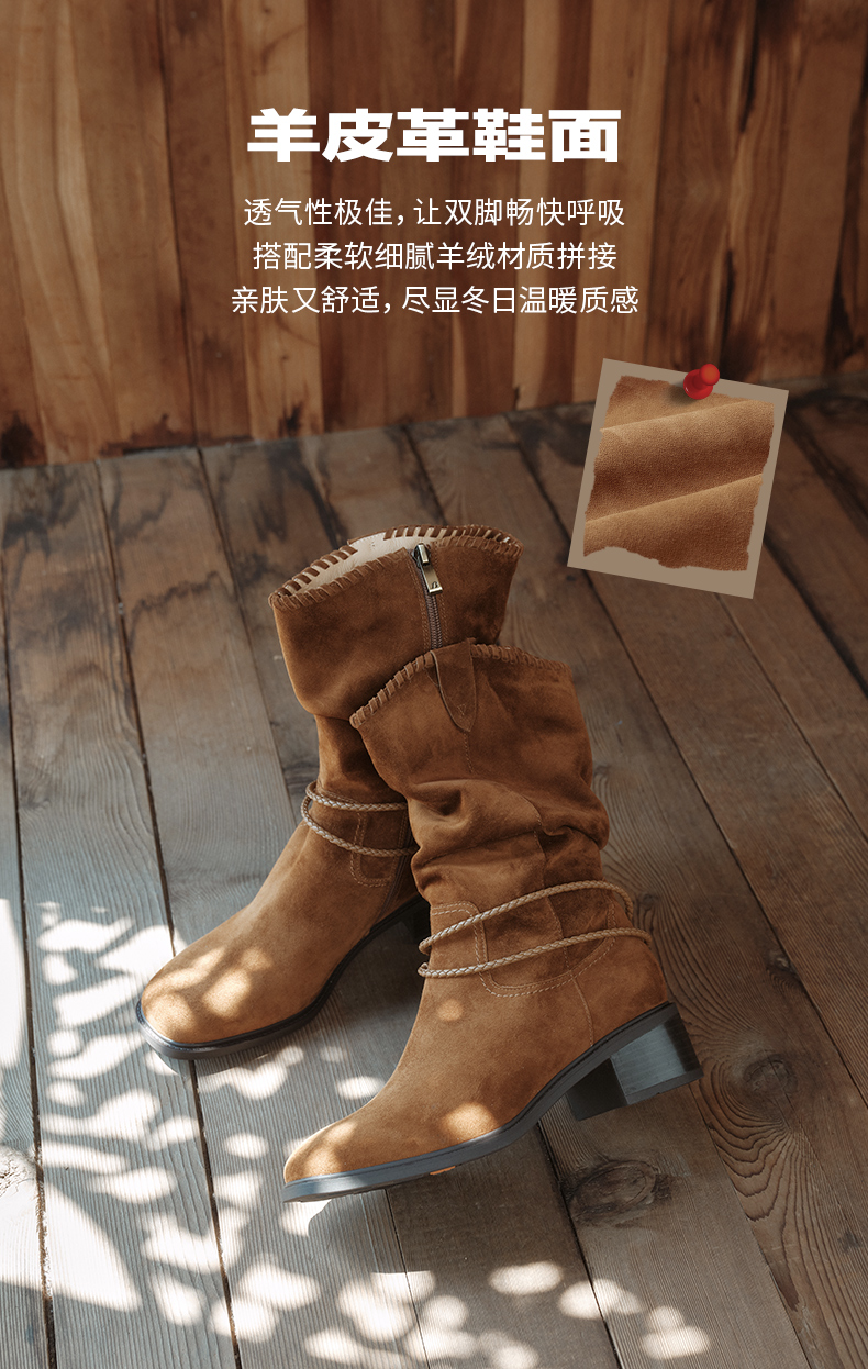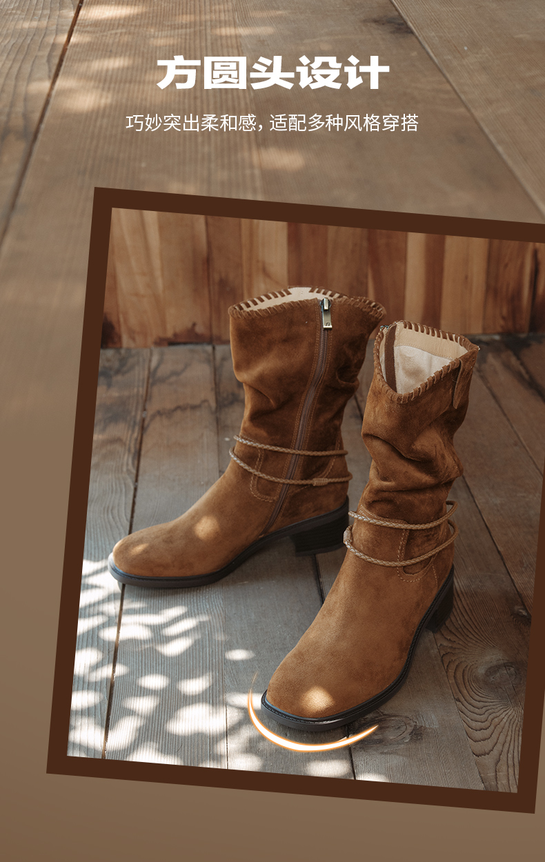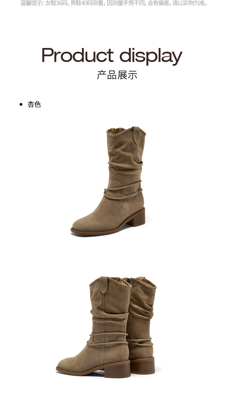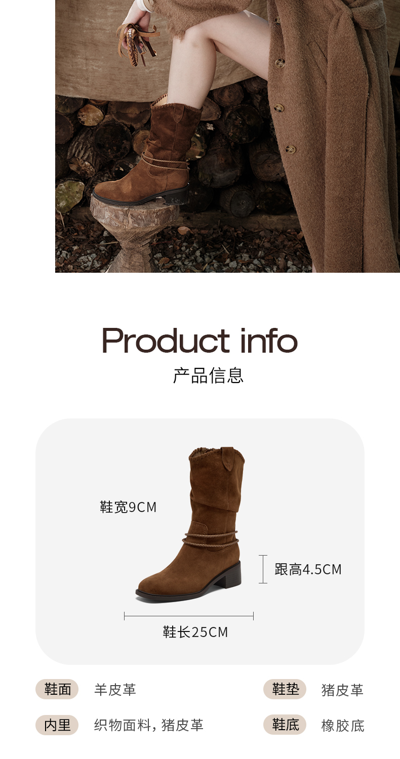 | 靴筒口围:32CM | 配跟:无 | 上市时间:2025年冬季 | 鞋类流行款式:西部靴 | 鞋头款式:圆头 |