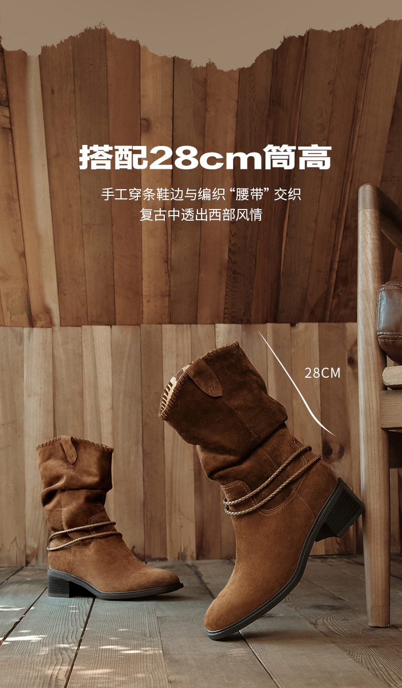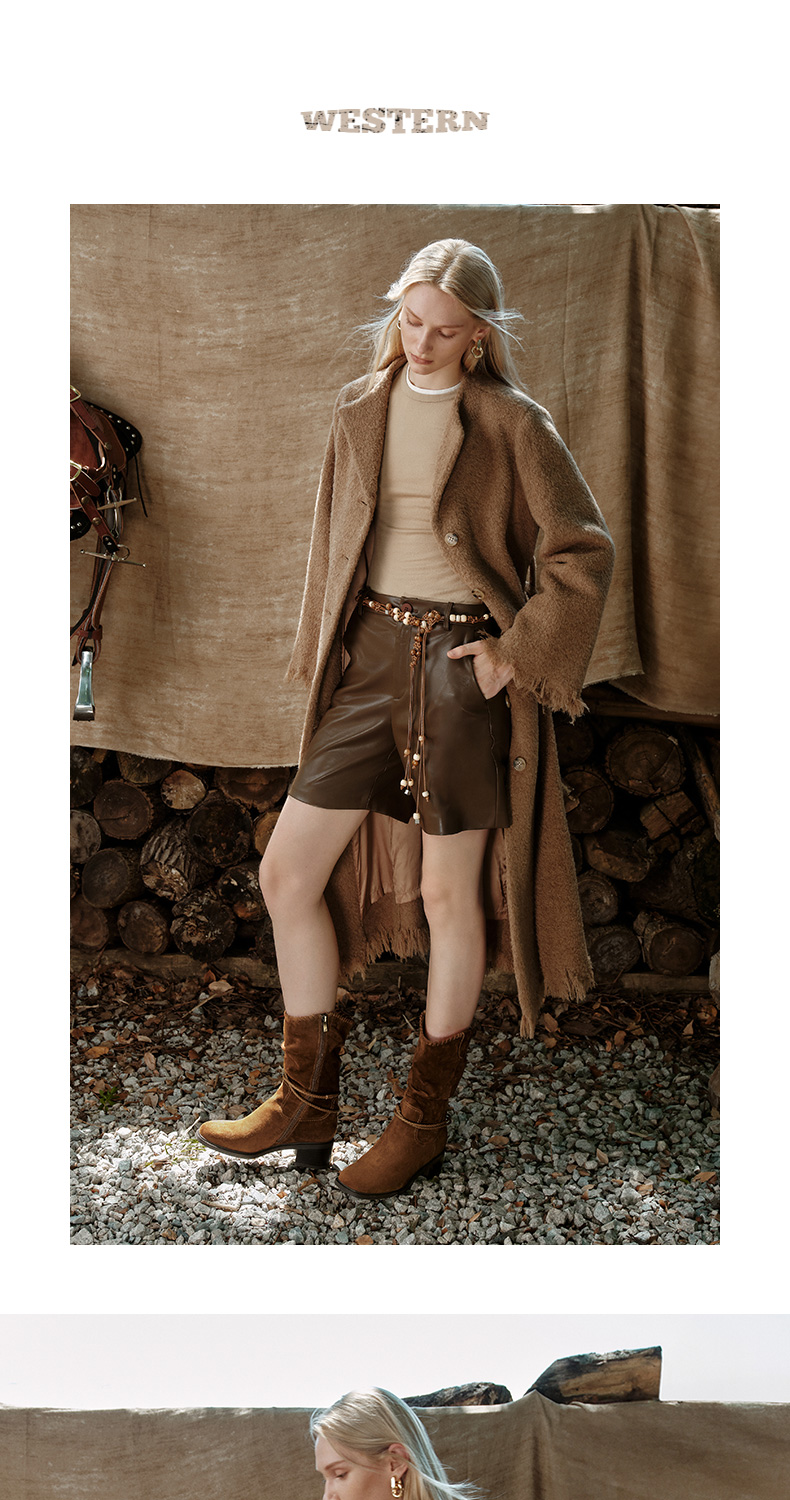 | 靴筒口围:32CM | 配跟:无 | 上市时间:2025年冬季 | 鞋类流行款式:西部靴 | 鞋头款式:圆头 |