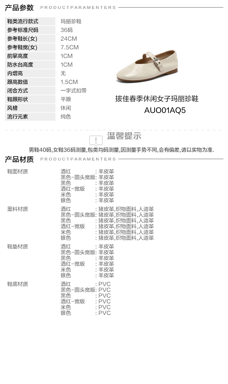 | 皮质特征:软面皮 | 前掌高度:1CM | 防水台高度:1CM | 鞋类流行款式:玛丽珍鞋 |