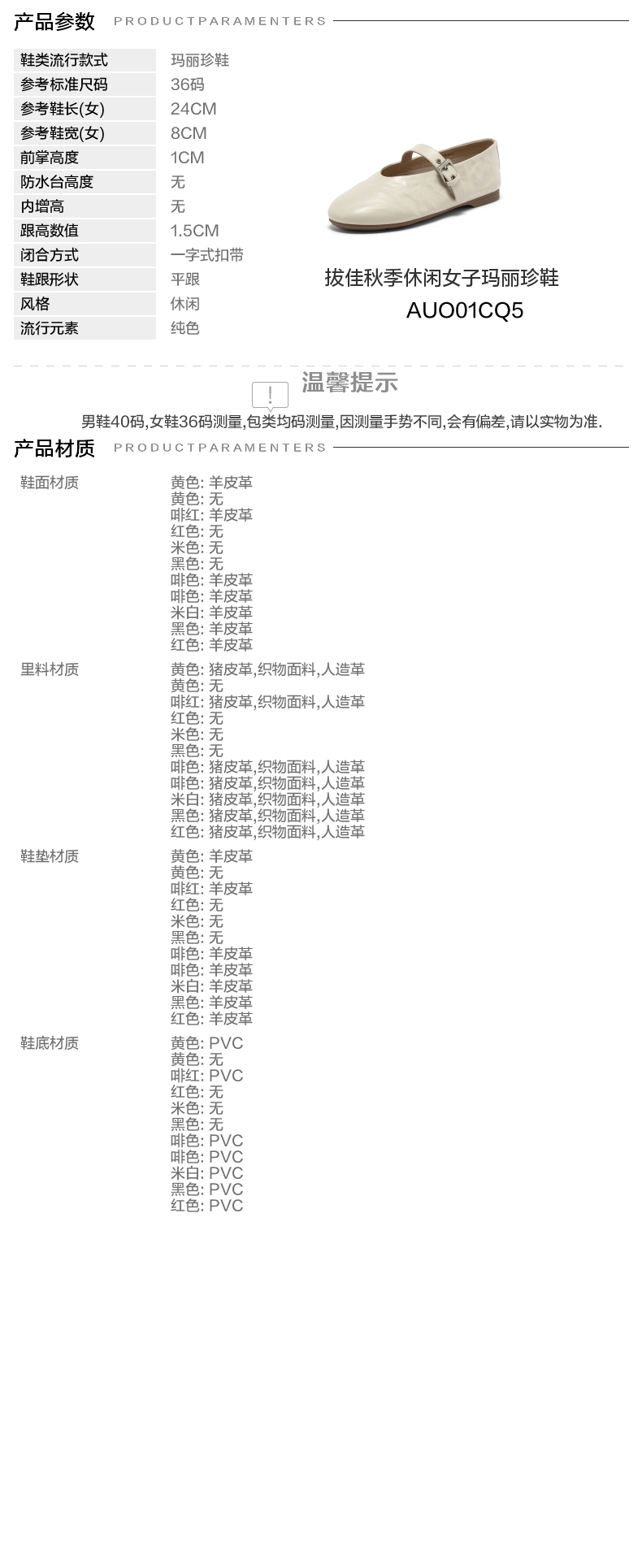 | 皮质特征:软面皮 | 前掌高度:1CM | 防水台高度:无 | 鞋类流行款式:玛丽珍鞋 |