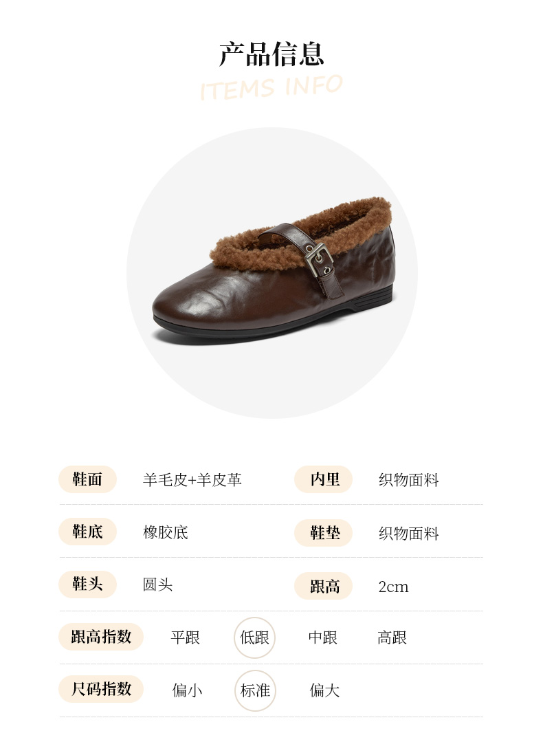 | 上市时间:2025年冬季 | 鞋类流行款式:玛丽珍鞋 | 鞋头款式:圆头 | 鞋面图案:纯色 | 鞋跟形状:平跟 |