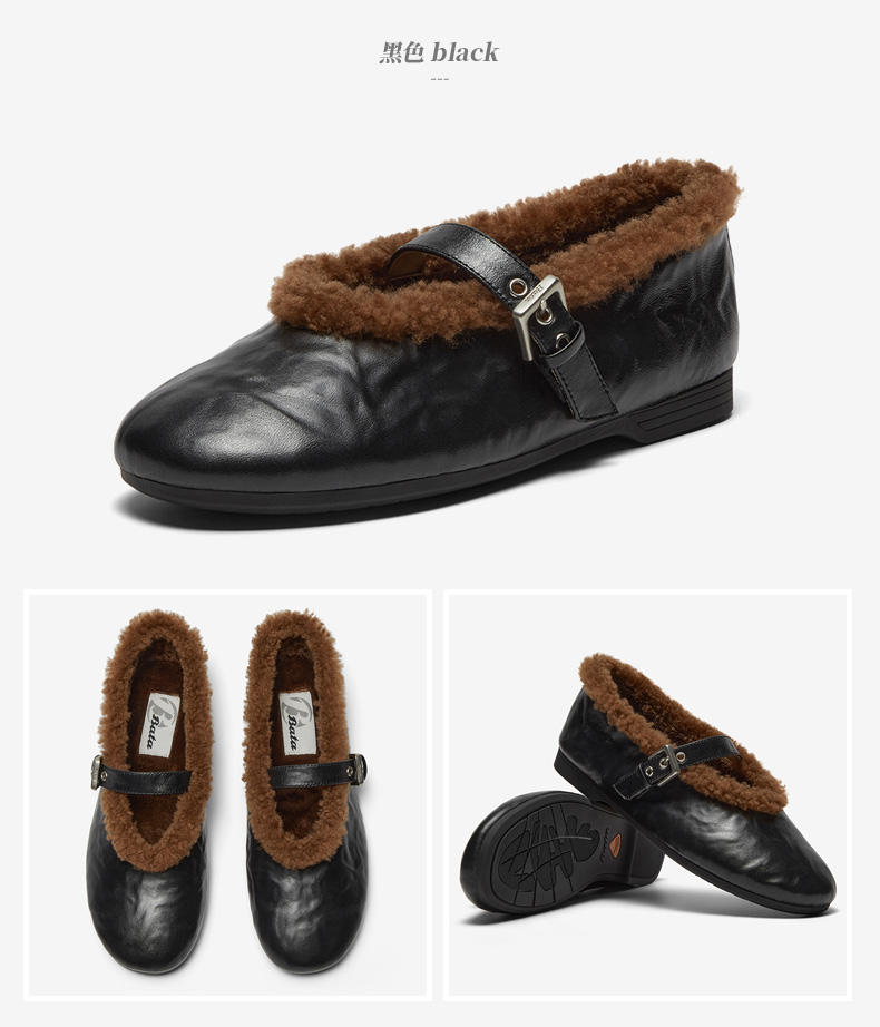 | 鞋底材质:橡胶底 | 内增高:无 | 鞋面材质:羊皮革羊毛皮 | 闭合方式:一字式扣带 | 配跟:无 |