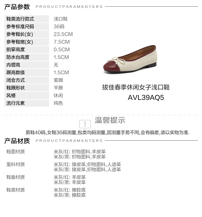 | 鞋类流行款式:浅口鞋 | 鞋头款式:圆头 | 跟高范围:低跟鞋(小于3CM) | 鞋面图案:纯色 | 鞋跟形状:平跟 |