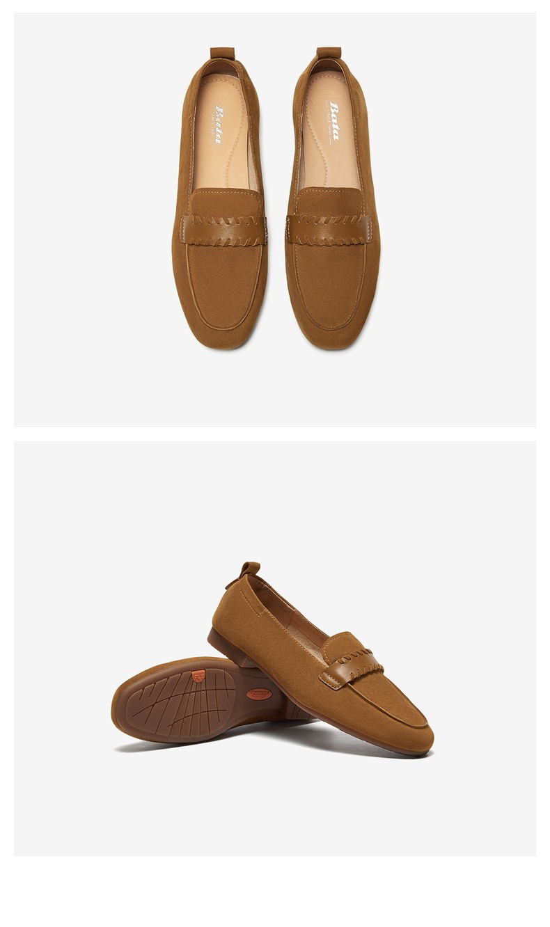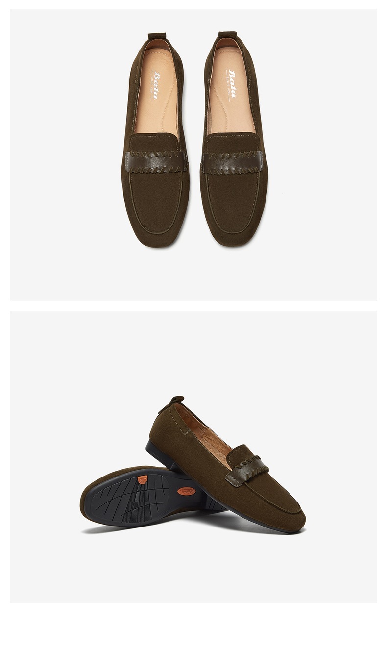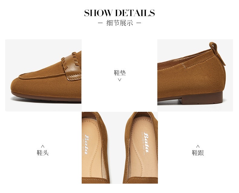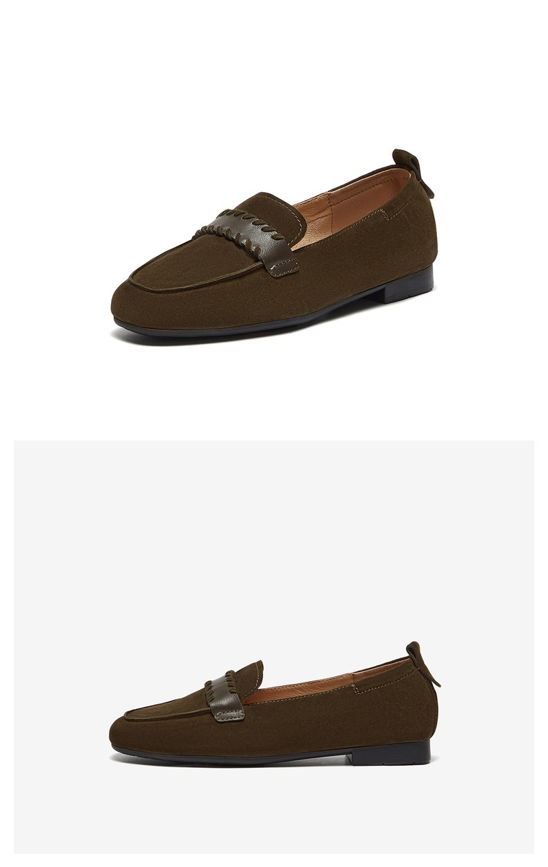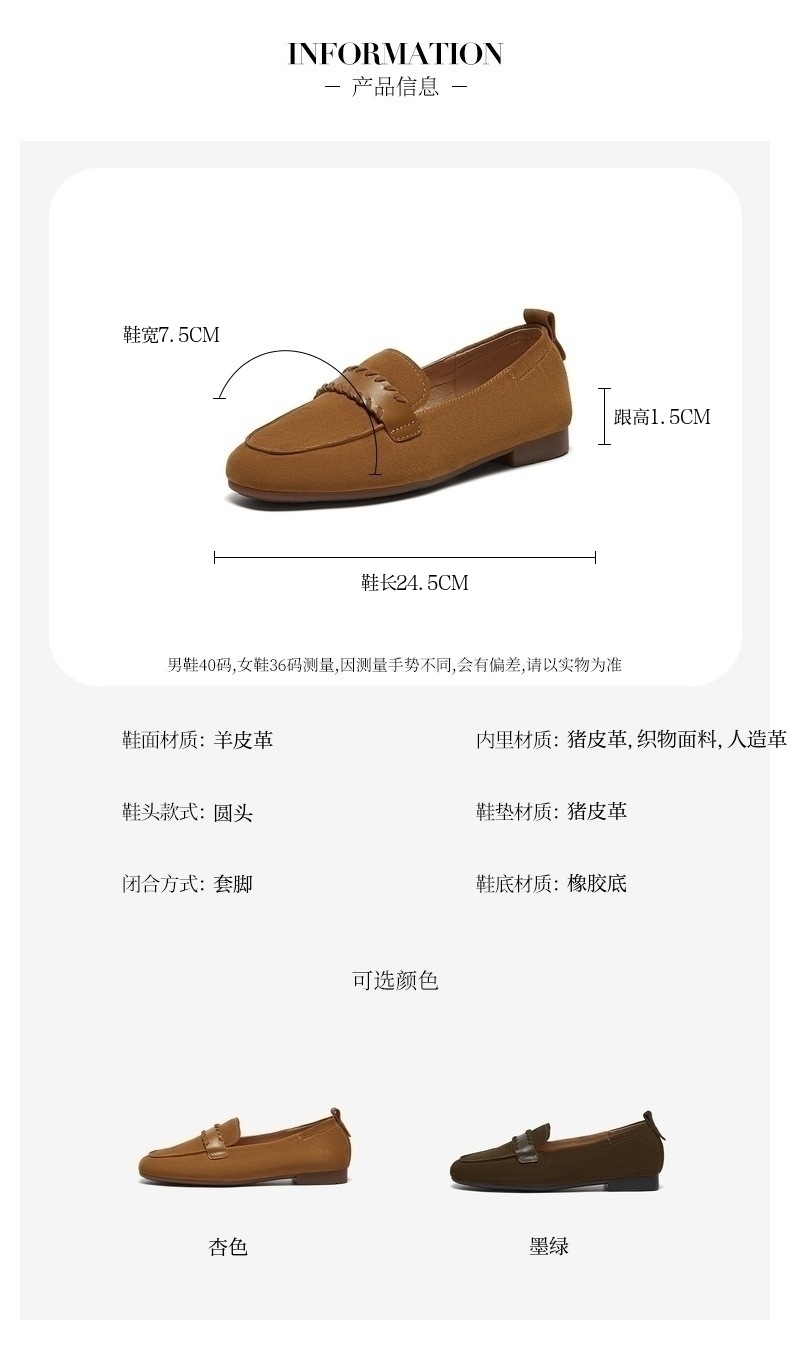| 上市时间:2025年春季 | 鞋类流行款式:乐福鞋 | 鞋头款式:圆头 | 跟高范围:低跟鞋(小于3CM) | 鞋面图案:纯色 |