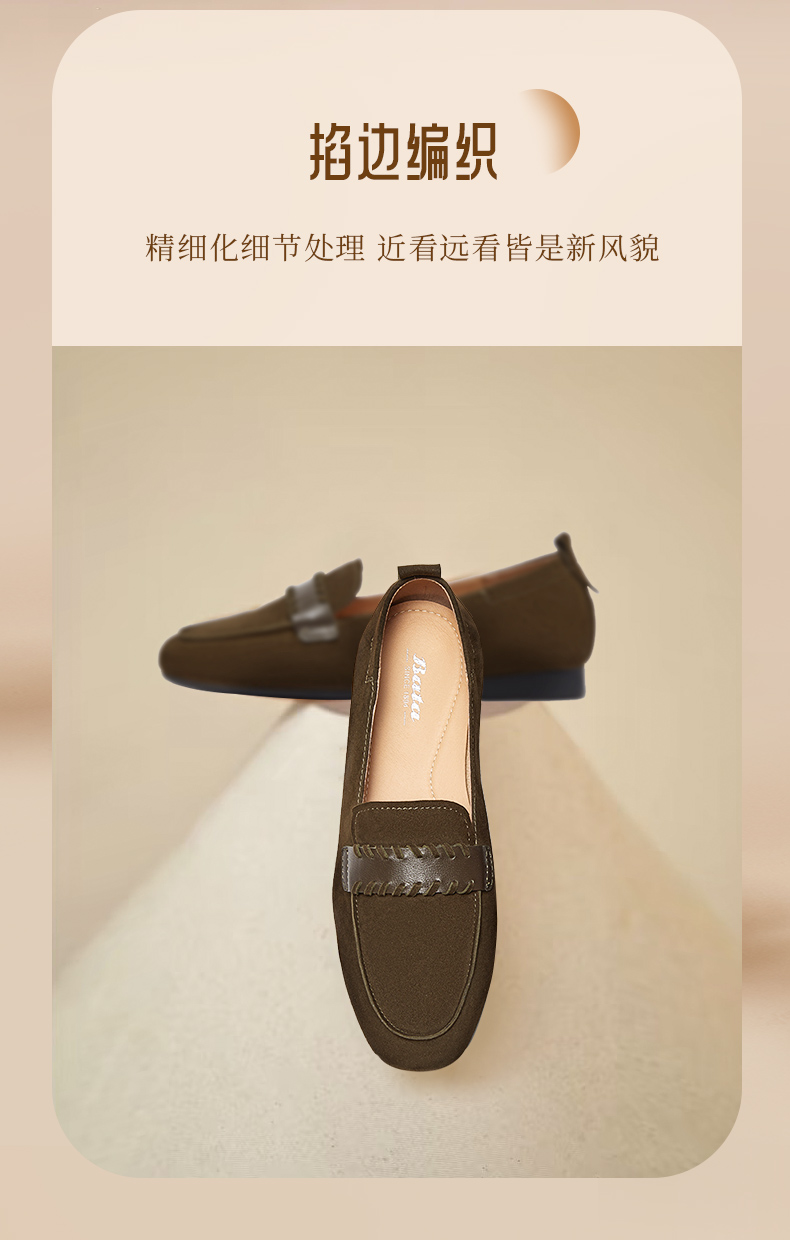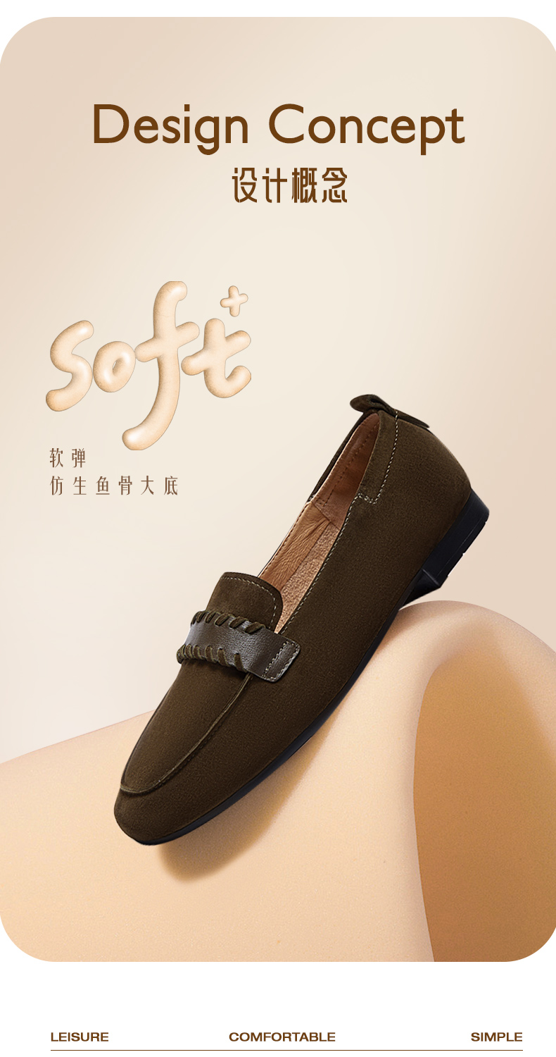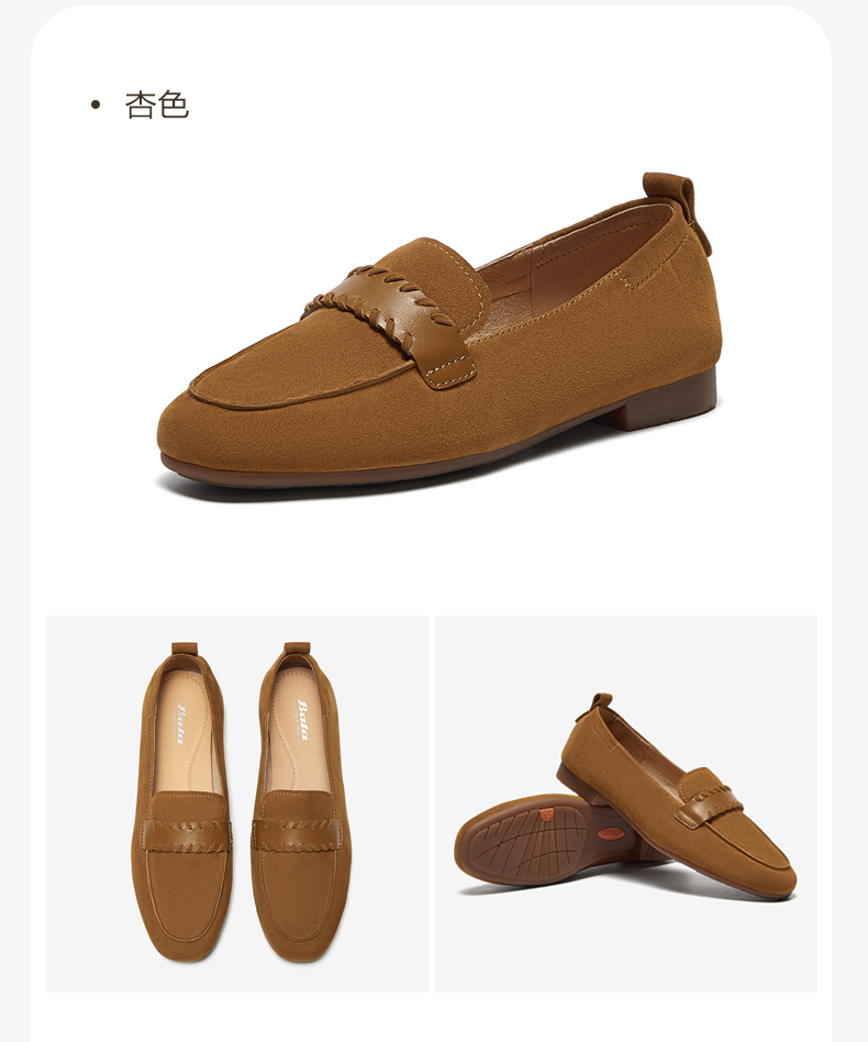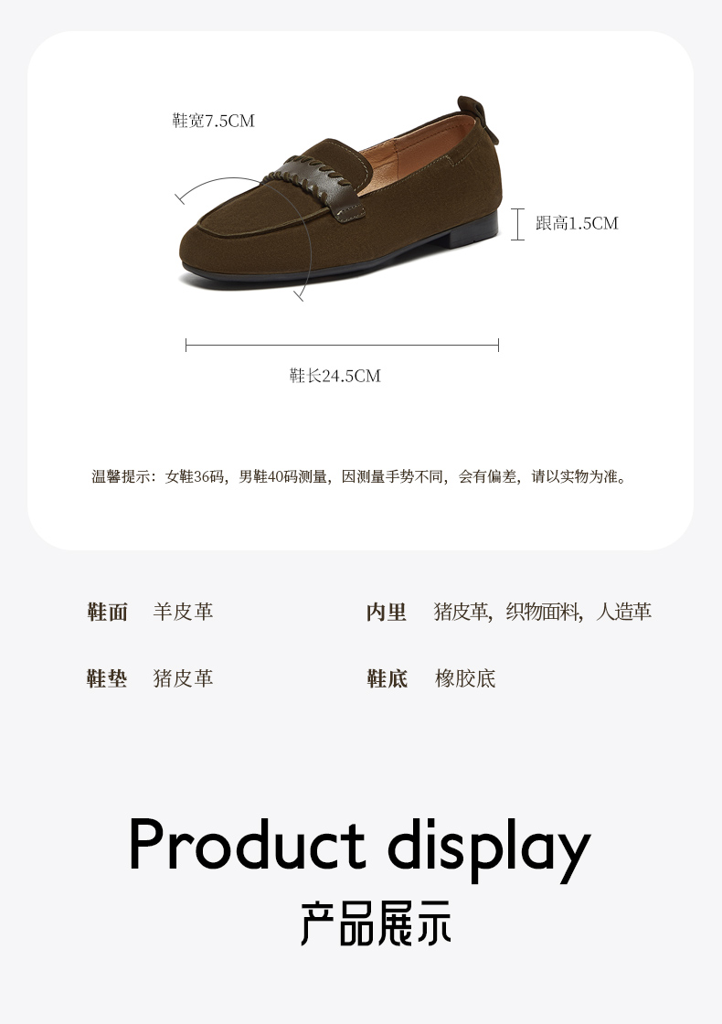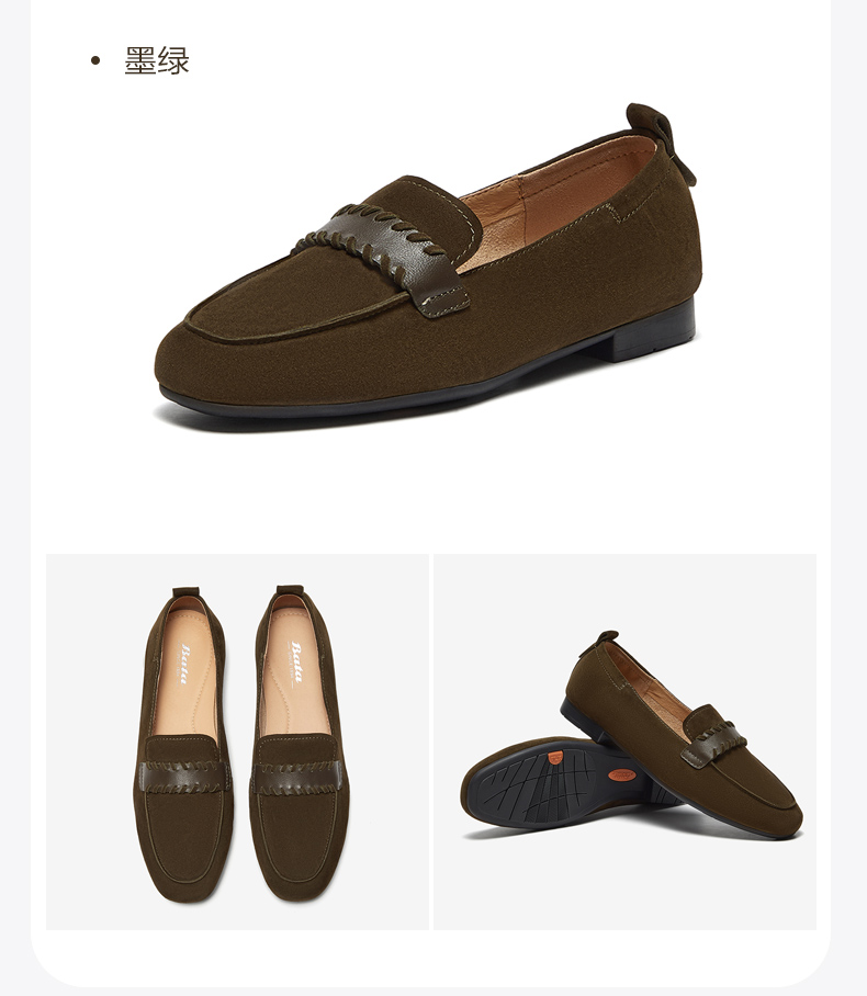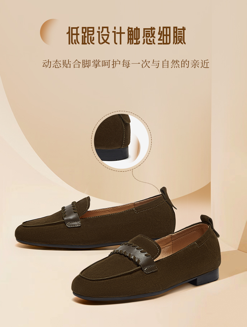 | 上市时间:2025年春季 | 鞋类流行款式:乐福鞋 | 鞋头款式:圆头 | 跟高范围:低跟鞋(小于3CM) | 鞋面图案:纯色 |