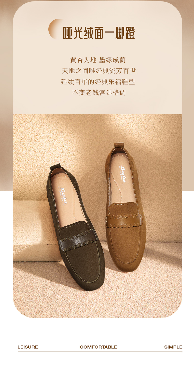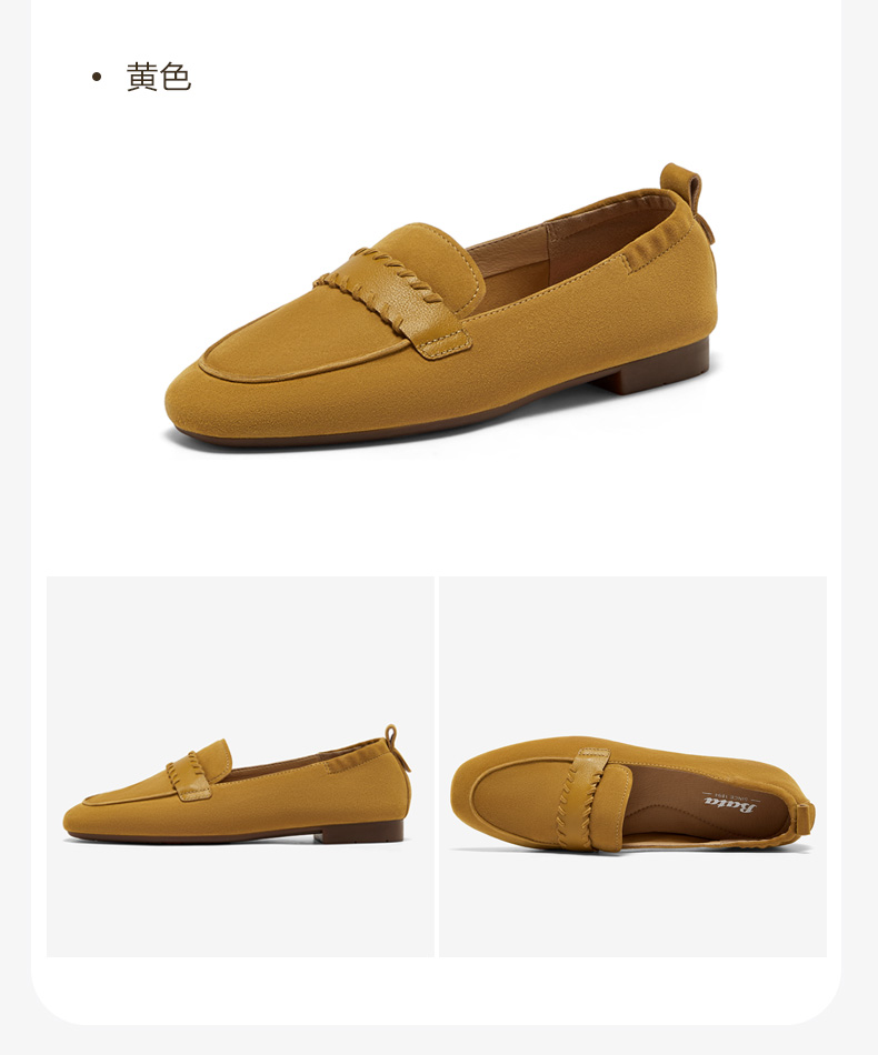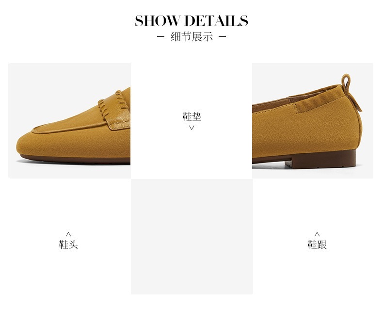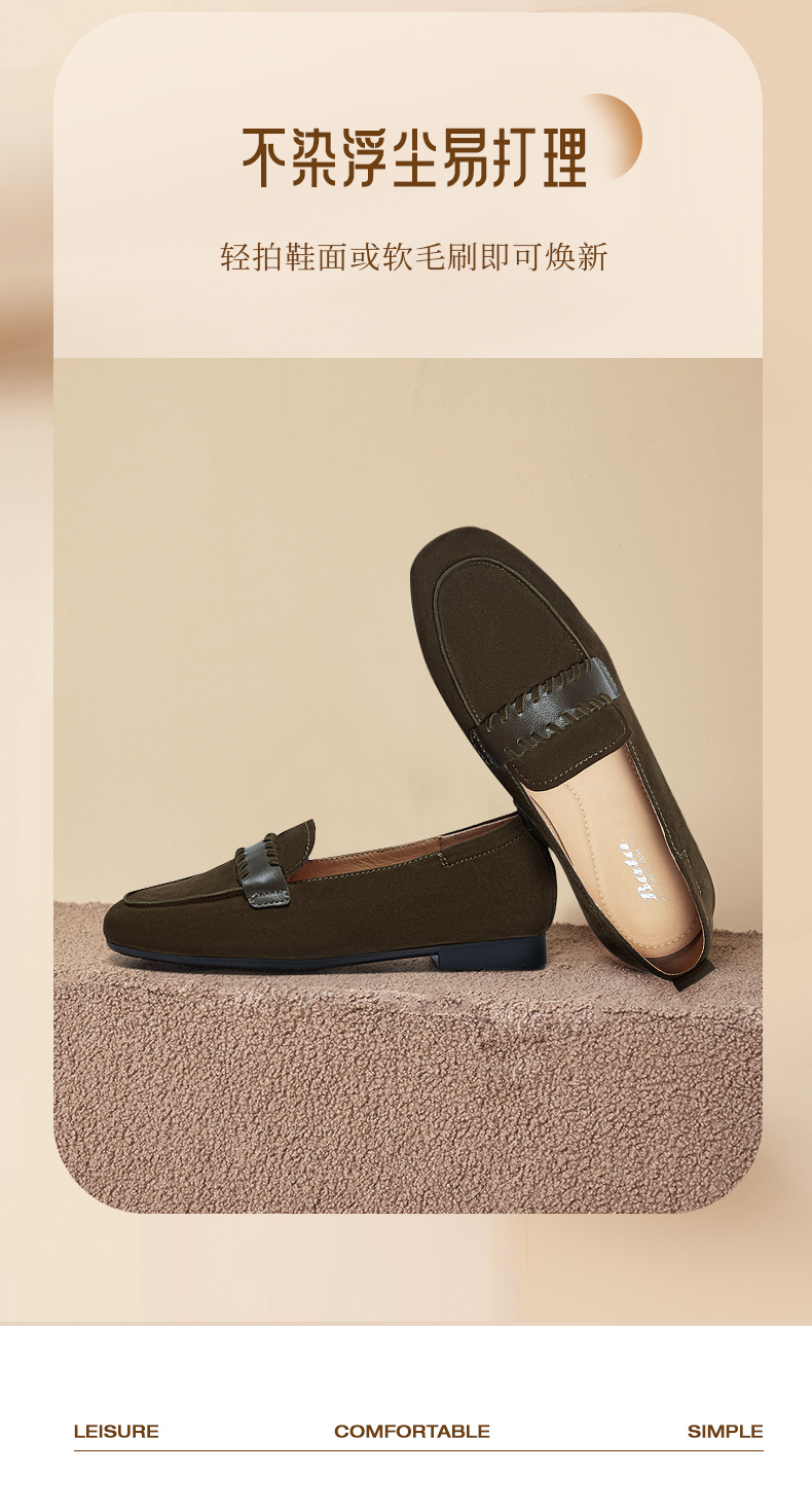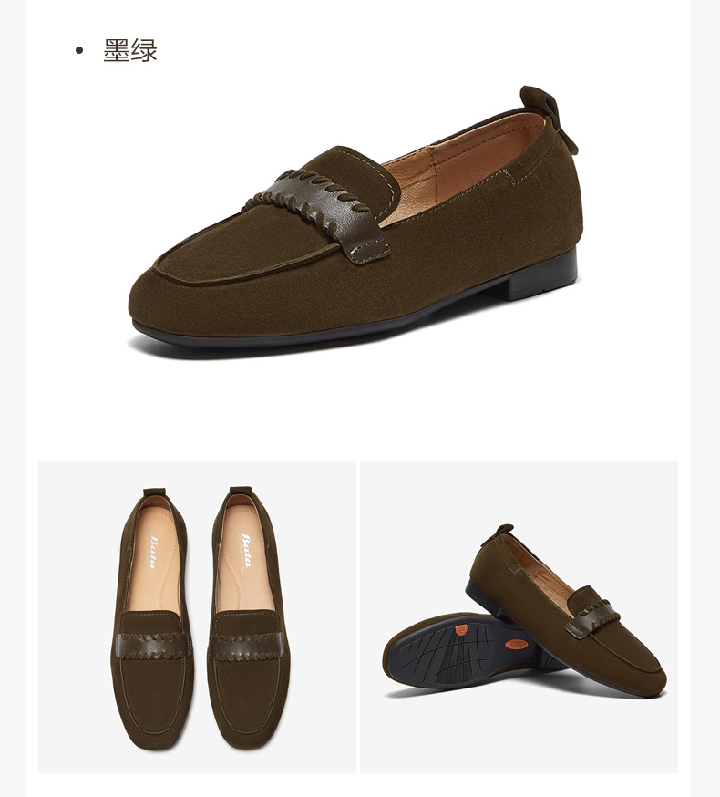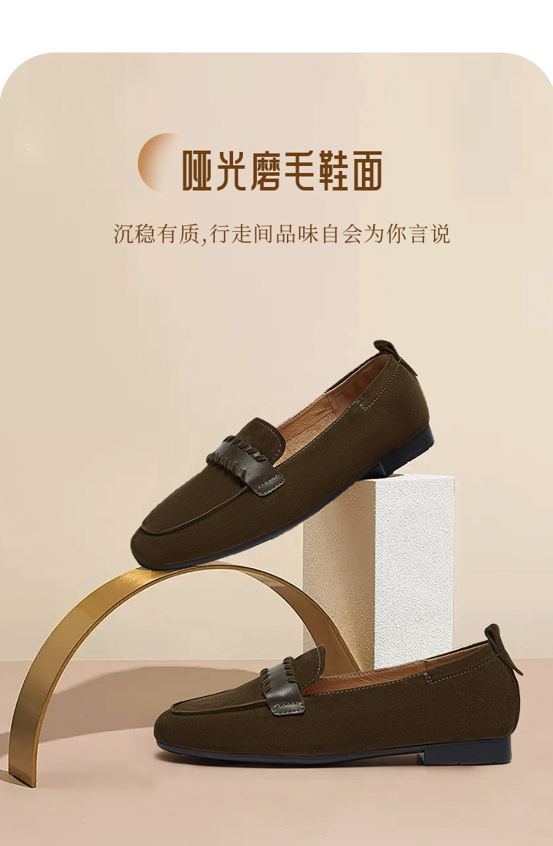 | 上市时间:2025年春季 | 鞋类流行款式:乐福鞋 | 鞋头款式:圆头 | 跟高范围:低跟鞋(小于3CM) | 鞋面图案:纯色 |