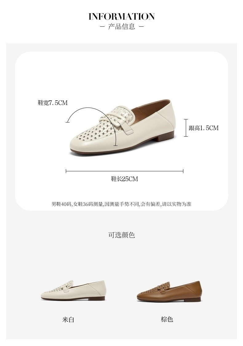 | 配跟:无 | 上市时间:2025年夏季 | 鞋类流行款式:乐福鞋 | 鞋头款式:圆头 | 鞋面图案:纯色 |