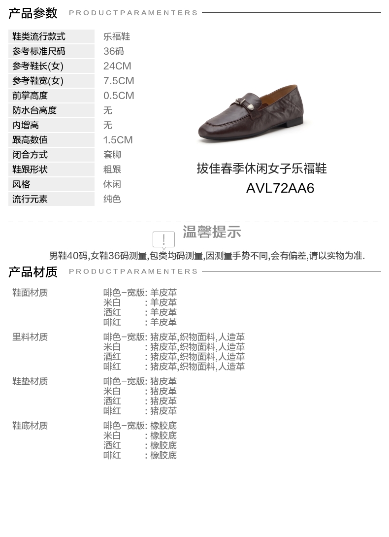 | 里料材质:人造革织物面料猪皮革 | 制鞋工艺:胶贴皮鞋 | 鞋垫材质:猪皮革 | 款式季节:春季 | 前掌高度:0.5CM |