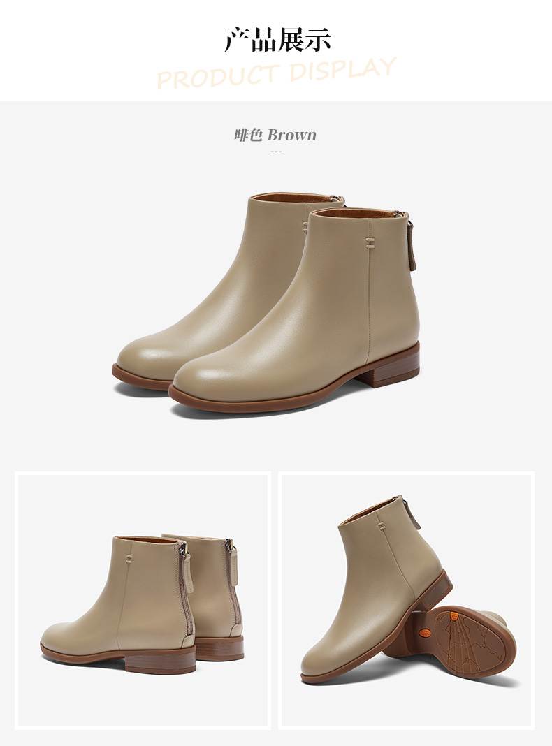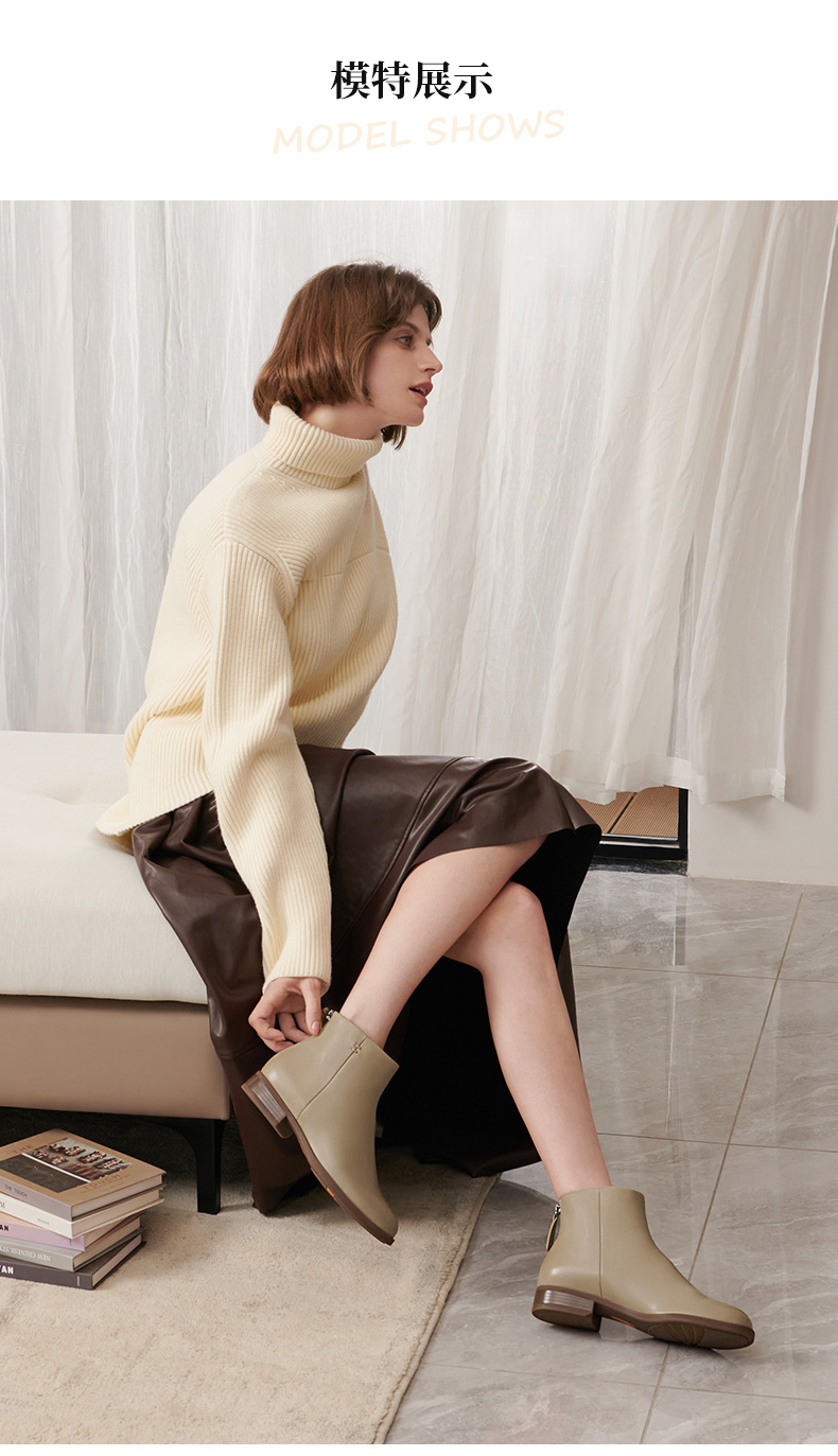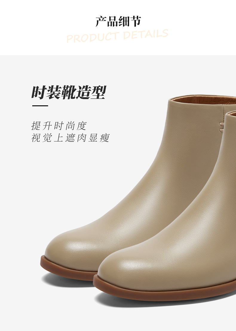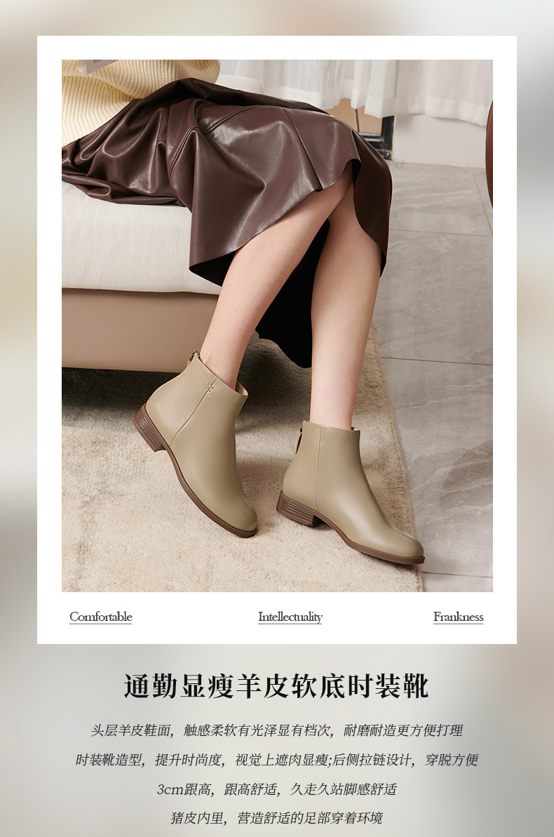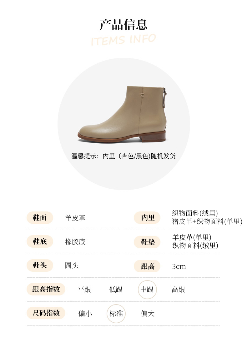 | 鞋底材质:橡胶底 | 靴筒内里材质:猪皮革织物面料猪皮革 | 内增高:无 | 鞋面材质:羊皮革 | 闭合方式:后拉链 |