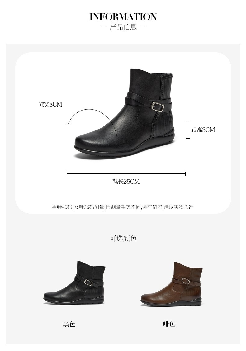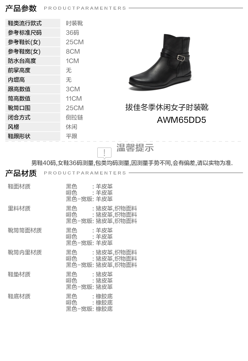 | 鞋底材质:橡胶底 | 靴筒内里材质:织物面料猪皮革 | 内增高:无 | 鞋面材质:羊皮革 | 闭合方式:侧拉链 |