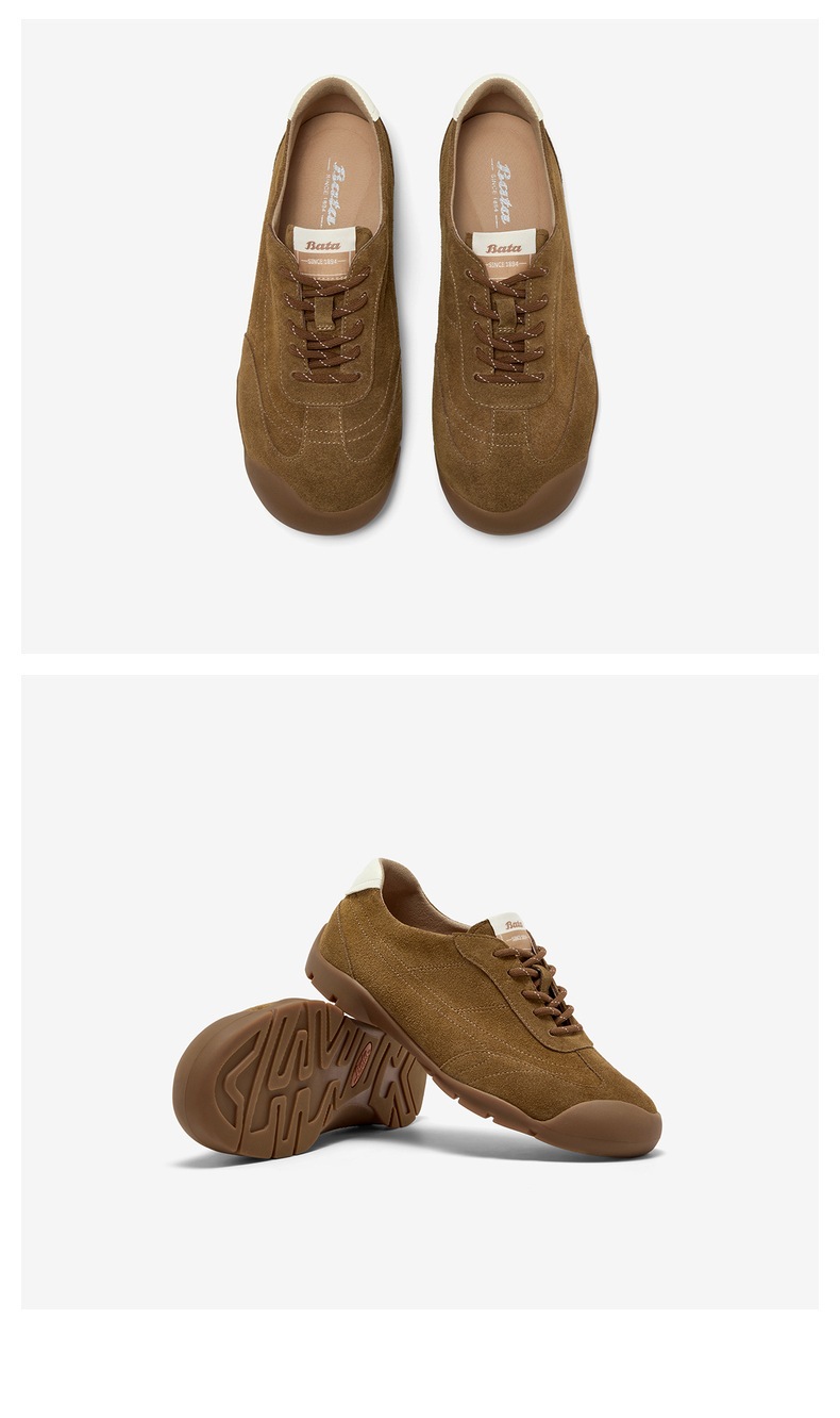 | 鞋帮:低帮 | 鞋底材质:橡胶底 | 内增高:无 | 鞋面材质:牛剖层革 | 闭合方式:系带 |