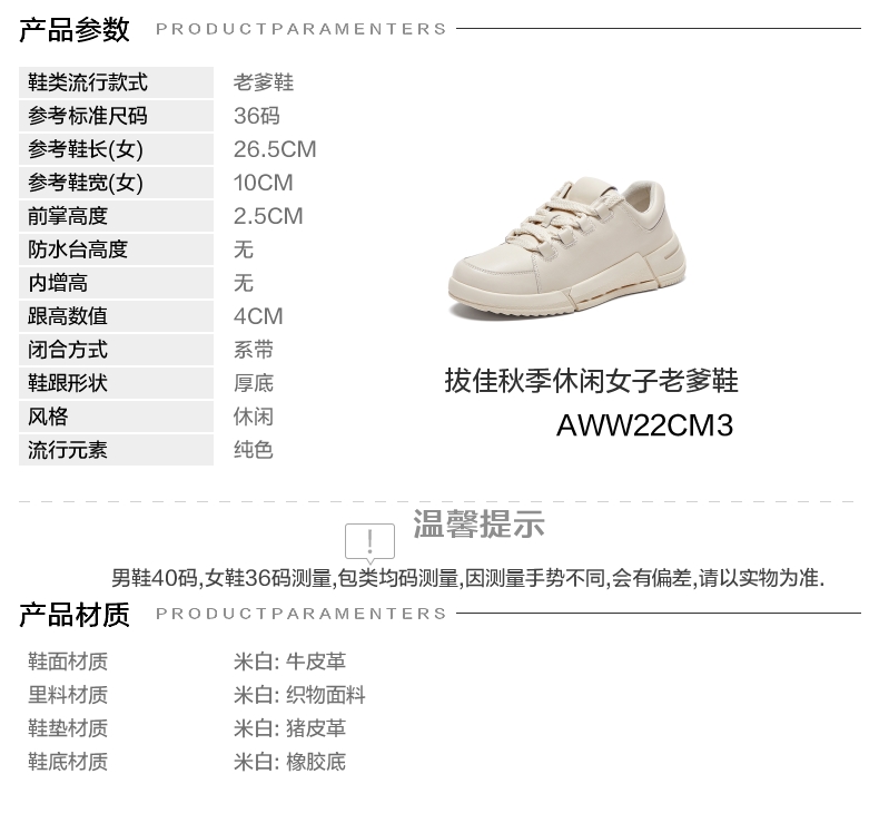 | 配跟:无 | 上市时间:2023年秋季 | 鞋类流行款式:老爹鞋 | 鞋头款式:圆头 | 鞋面图案:纯色 |