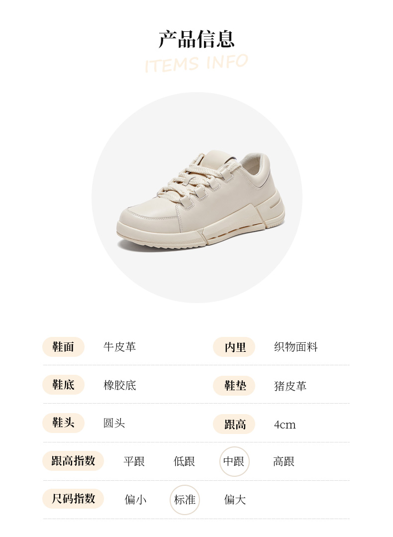 | 鞋帮:低帮 | 鞋底材质:橡胶底 | 内增高:无 | 鞋面材质:牛皮革 | 闭合方式:系带 |