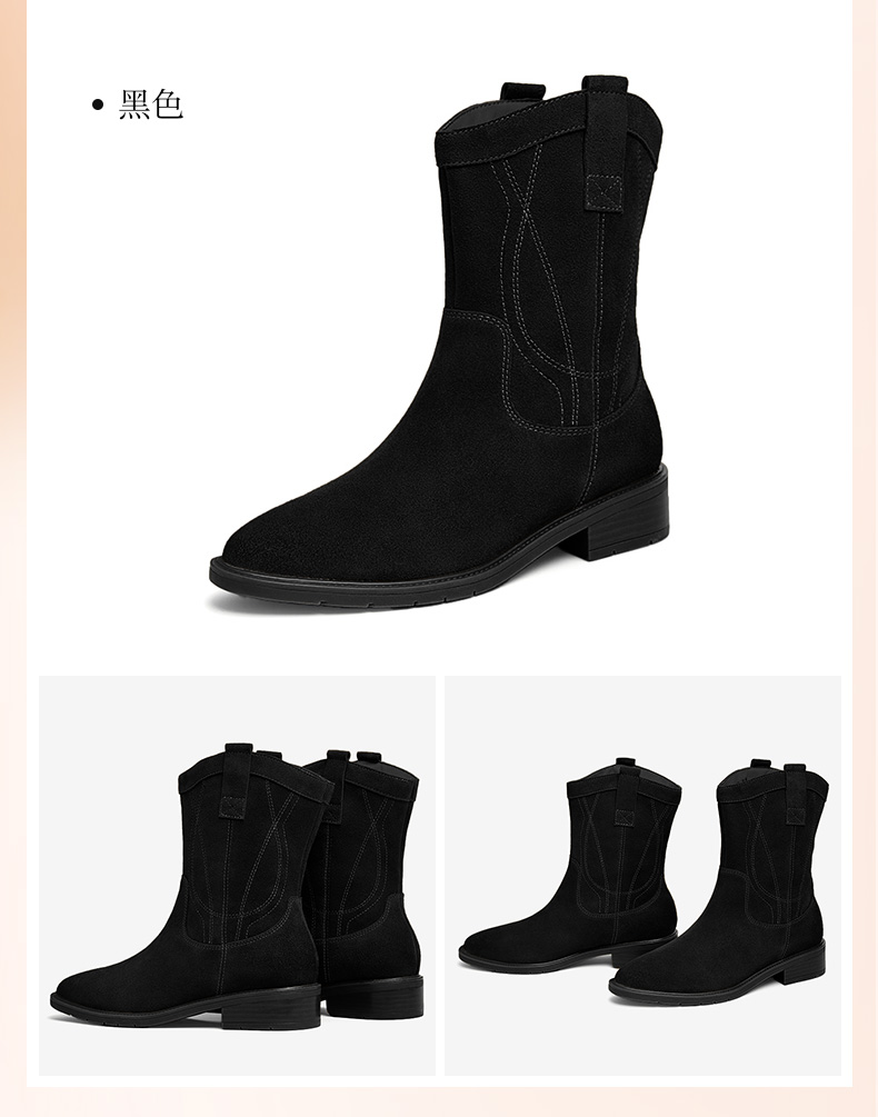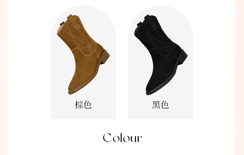 | 风格分类:西部靴 | 上市时间:2024年冬季 | 鞋类流行款式:西部靴 | 鞋头款式:圆头 | 跟高范围:中跟鞋(3-5CM) |