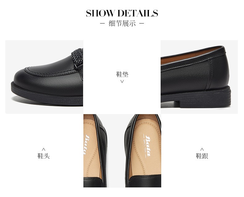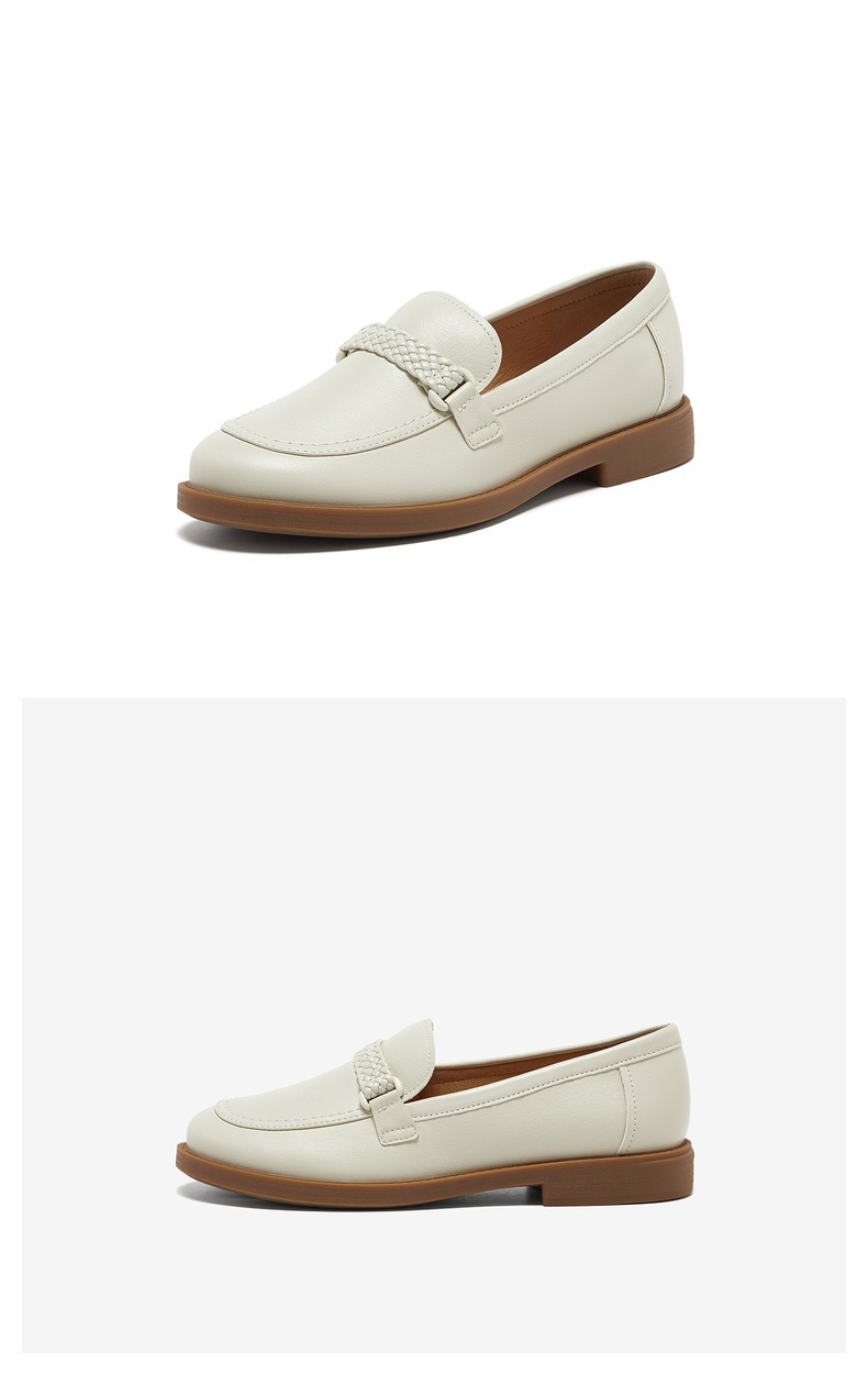 | 鞋类流行款式:乐福鞋 | 鞋头款式:圆头 | 跟高范围:低跟鞋(小于3CM) | 鞋面图案:纯色 | 鞋跟形状:平跟 |