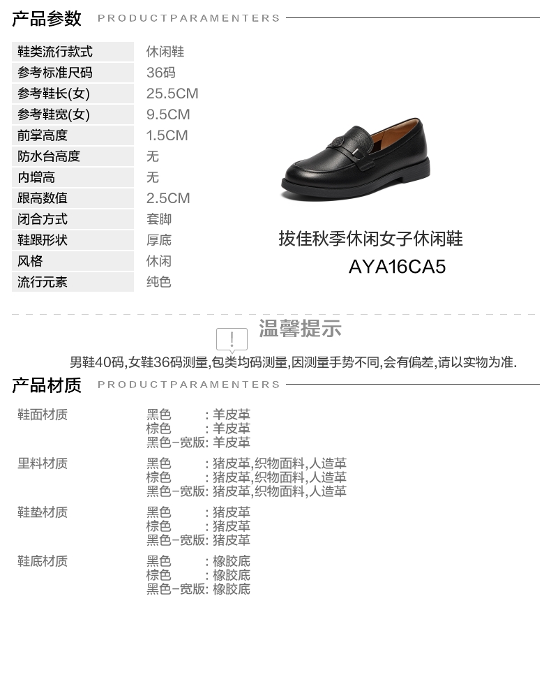 | 鞋帮:低帮 | 鞋底材质:橡胶底 | 内增高:无 | 鞋面材质:羊皮革 | 闭合方式:套脚 |