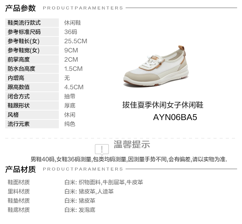 | 年份:2025年 | 色系:米白 | 参考标准尺码:36码 | 跟高数值:4.5CM | 性别:女子 |