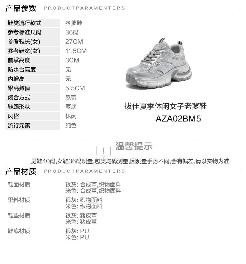 年份:2025年 色系:银色 参考标准尺码:36码 跟高数值:5.5CM 性别:女子