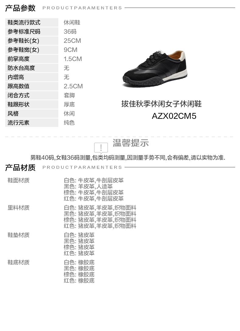 | 鞋跟形状:厚底 | 参考鞋长(女):25CM | 流行元素:纯色 | 参考鞋宽(女):9CM | 风格:休闲 |