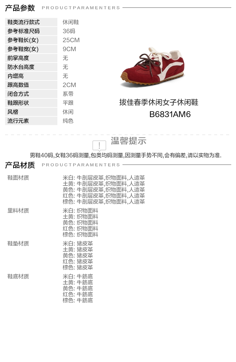 | 鞋帮:低帮 | 鞋底材质:牛筋底 | 内增高:无 | 鞋面材质:牛剖层皮革人造革织物面料 | 闭合方式:系带 |