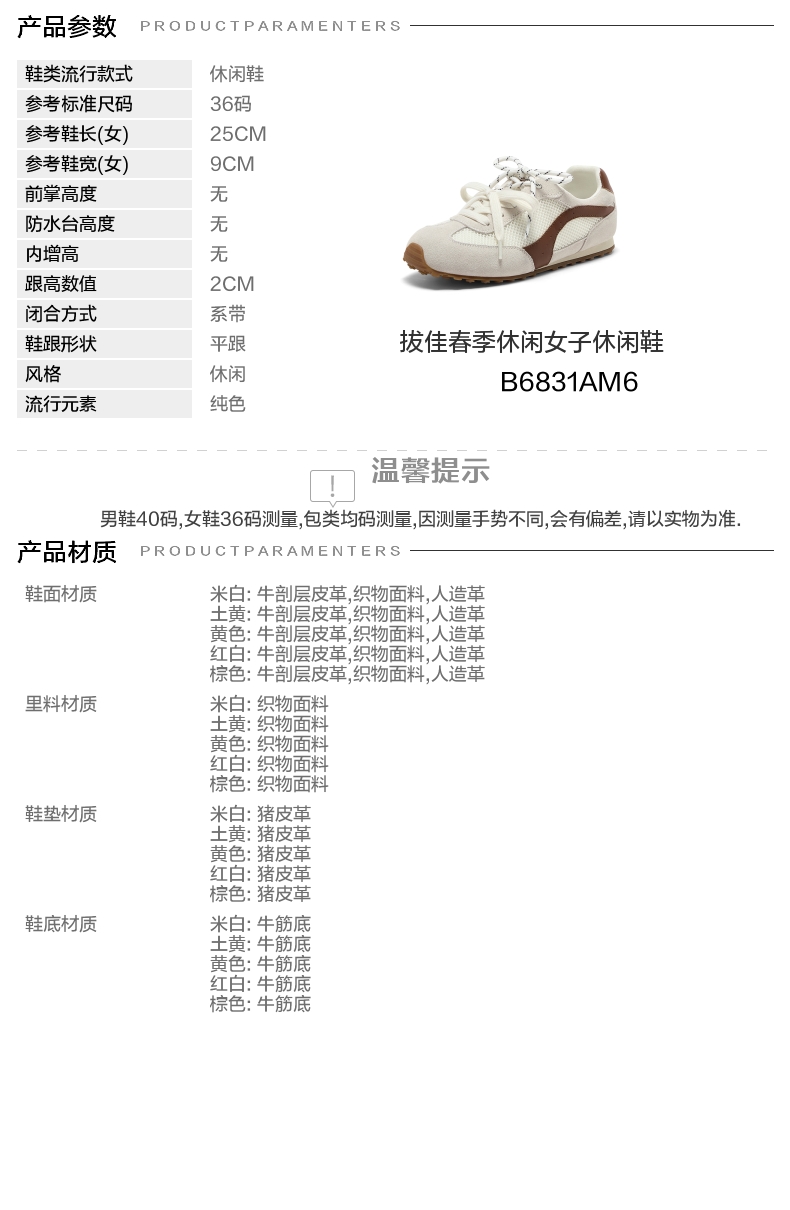 | 色系:米白 | 跟高数值:2CM | 适用人群:通用 | 性别:女子 | 里料材质:织物面料 |