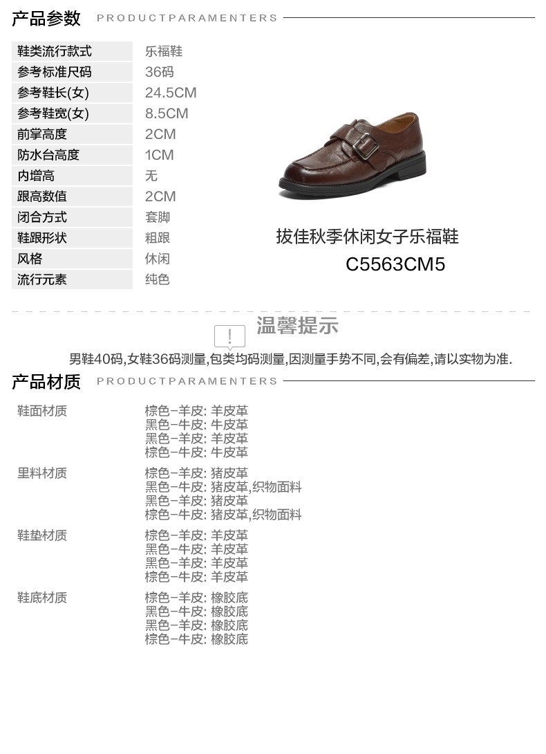 | 配跟:无 | 上市时间:2025年秋季 | 鞋类流行款式:乐福鞋 | 鞋头款式:圆头 | 鞋面图案:纯色 |