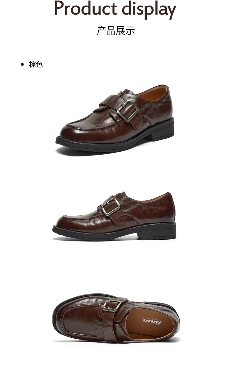 | 鞋面内里材质:猪皮革 | 色系:棕色 | 跟高数值:2CM | 性别:女子 | 里料材质:猪皮革 |