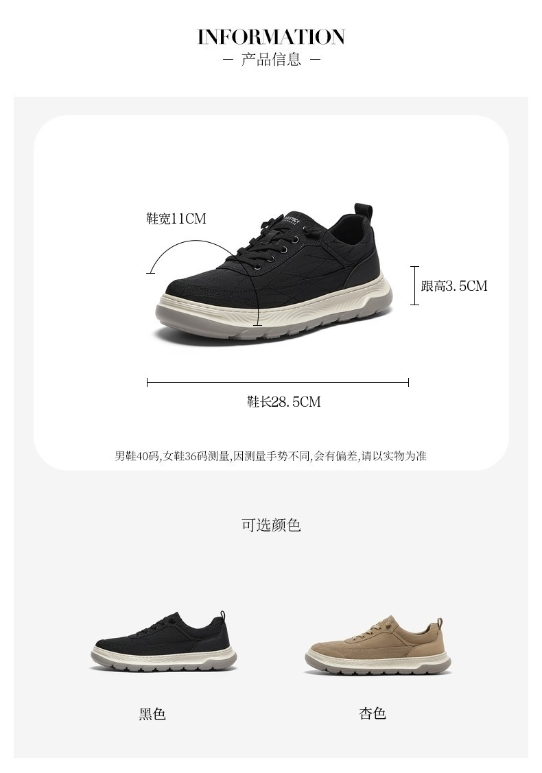 | 40码鞋长参考(男):28.5CM | 鞋帮:低帮 | 鞋头款式:圆头 | 鞋底材质:发泡底 | 鞋面图案:纯色 |