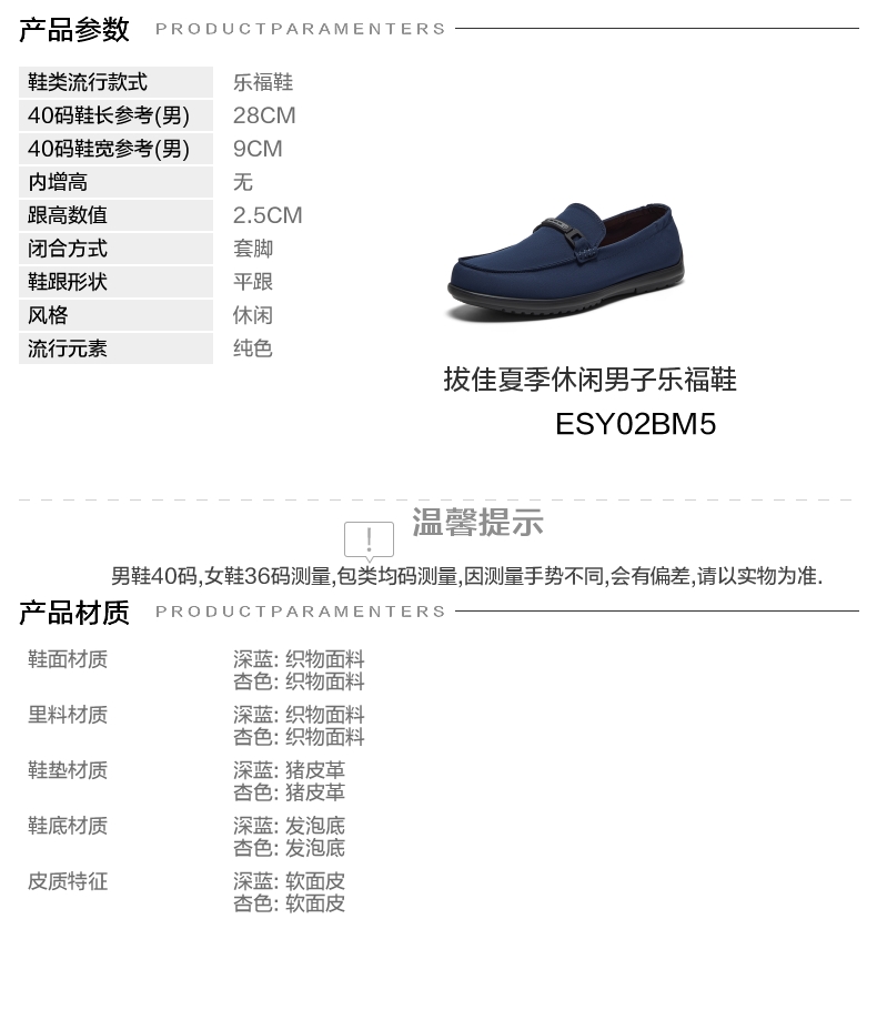 | 风格:休闲 | 色系:蓝色 | 跟高数值:2.5CM | 40码鞋宽参考(男):9CM | 性别:男子 |