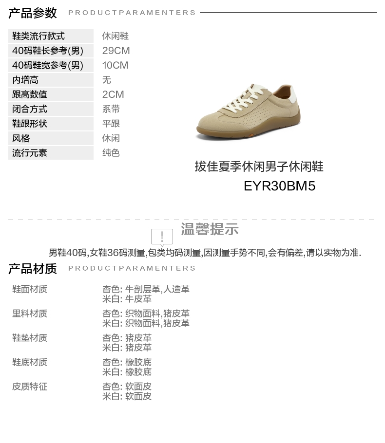 | 风格:休闲 | 色系:杏色 | 跟高数值:2CM | 40码鞋宽参考(男):10CM | 性别:男子 |