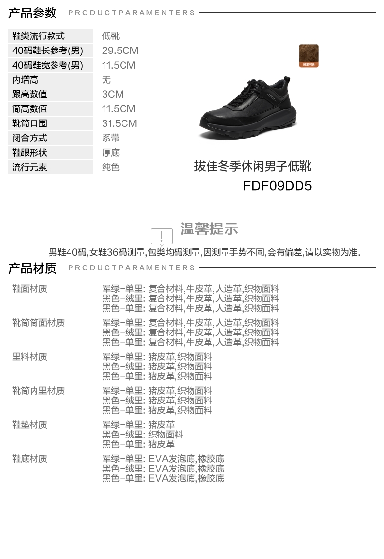 | 闭合方式:系带 | 40码鞋宽参考(男):11.5CM | 靴筒口围:31.5CM | 上市时间:2025年冬季 | 鞋类流行款式:低靴 |