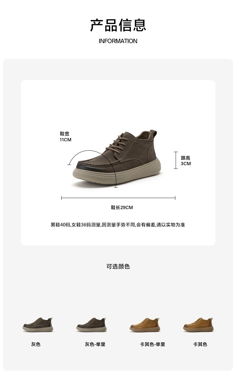 | 风格:休闲 | 色系:灰色 | 跟高数值:3CM | 40码鞋宽参考(男):11CM | 筒高数值:10CM |
