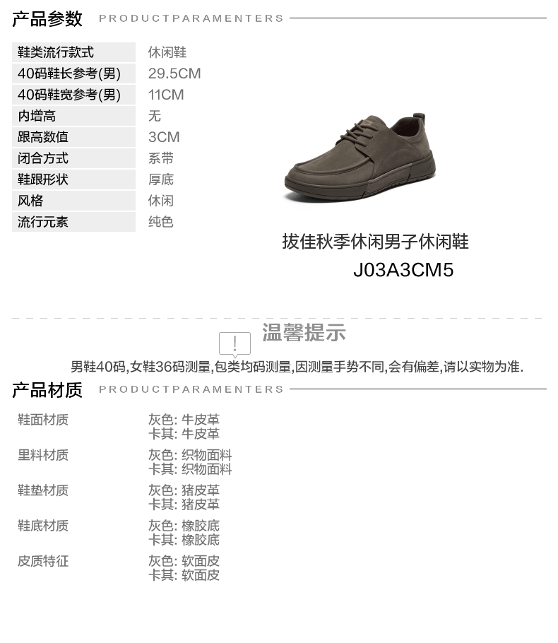 | 风格:休闲 | 色系:灰色 | 跟高数值:3CM | 40码鞋宽参考(男):11CM | 性别:男子 |