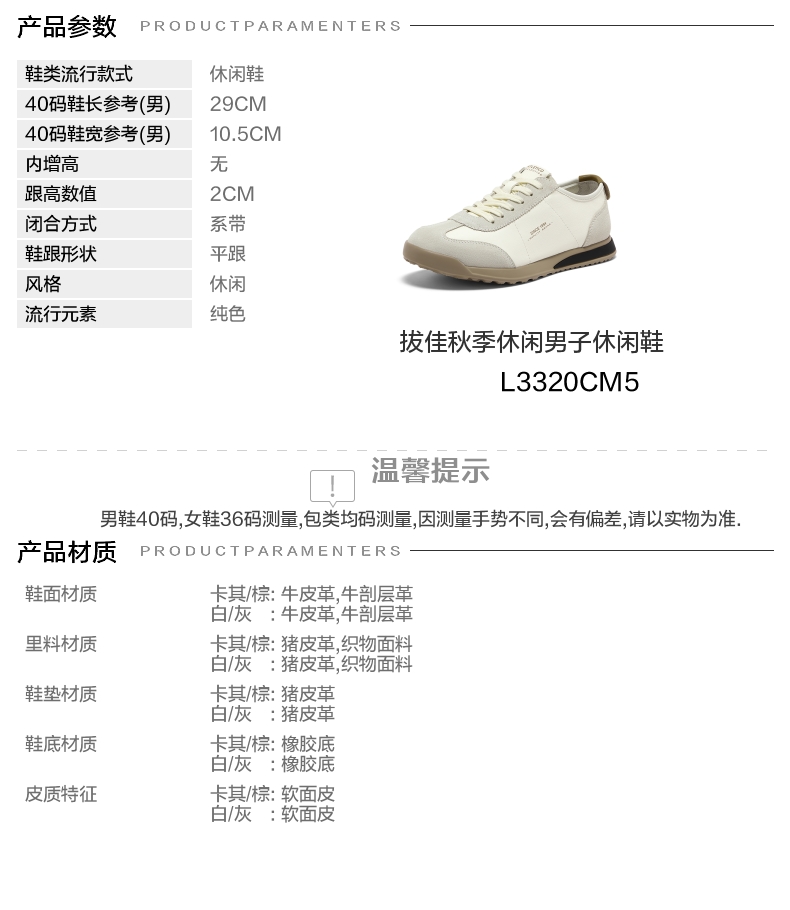 | 风格:休闲 | 色系:棕色 | 跟高数值:2CM | 40码鞋宽参考(男):10.5CM | 性别:男子 |