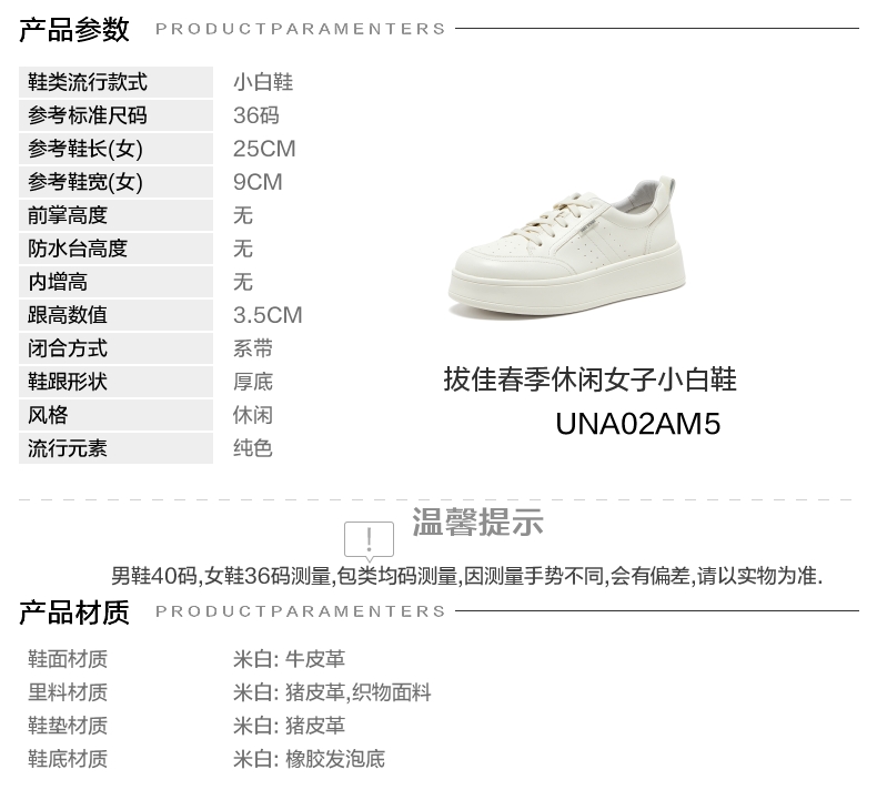 | 年份:2025年 | 色系:白色 | 参考标准尺码:36码 | 跟高数值:3.5CM | 性别:女子 |
