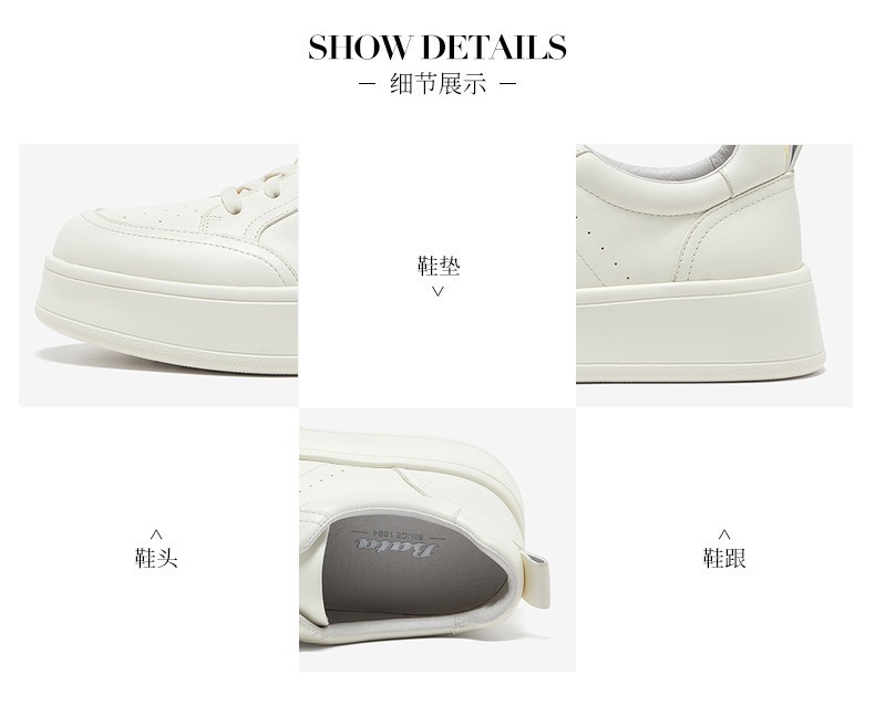 | 上市时间:2025年春季 | 鞋类流行款式:小白鞋 | 鞋头款式:圆头 | 跟高范围:中跟鞋(3-5CM) | 鞋面图案:纯色 |