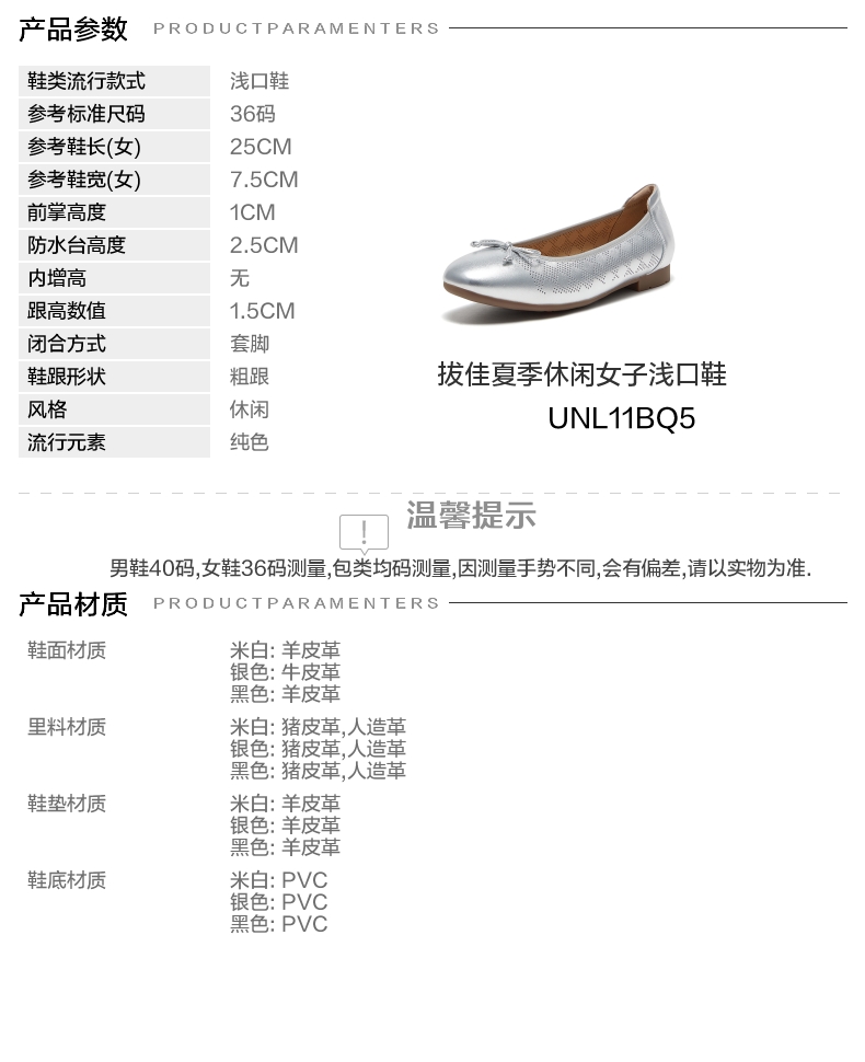 | 所在区域:电子商务 | 配跟:无 | 开口深度:浅口 | 风格分类:低平跟单鞋 | 上市时间:2025年夏季 |