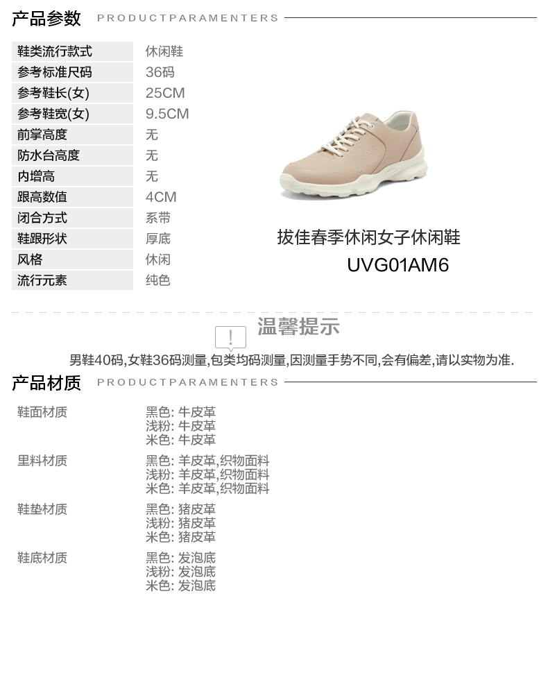 | 鞋跟形状:厚底 | 参考鞋长(女):25CM | 流行元素:纯色 | 参考鞋宽(女):9.5CM | 风格:休闲 |