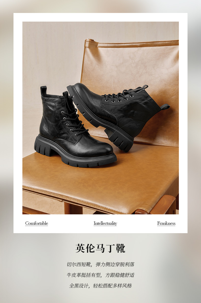| 帮面材质:牛皮革 | 配跟:无 | 靴筒口围:26CM | 上市时间:2025年冬季 | 鞋类流行款式:马丁靴 |