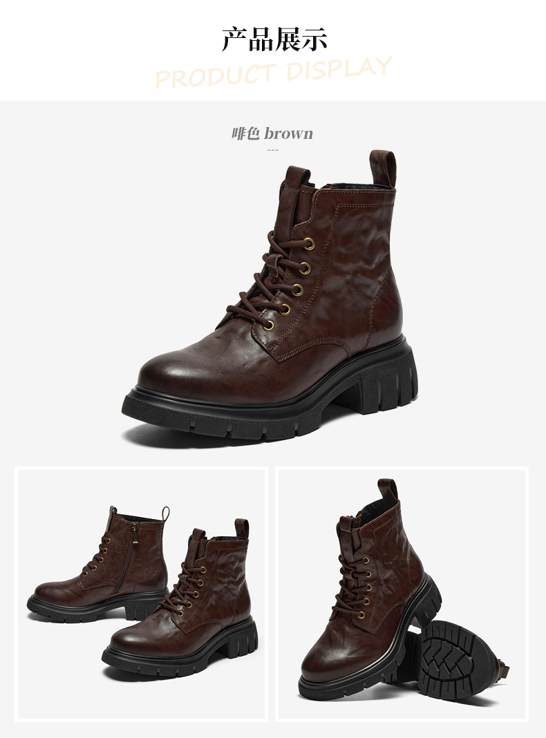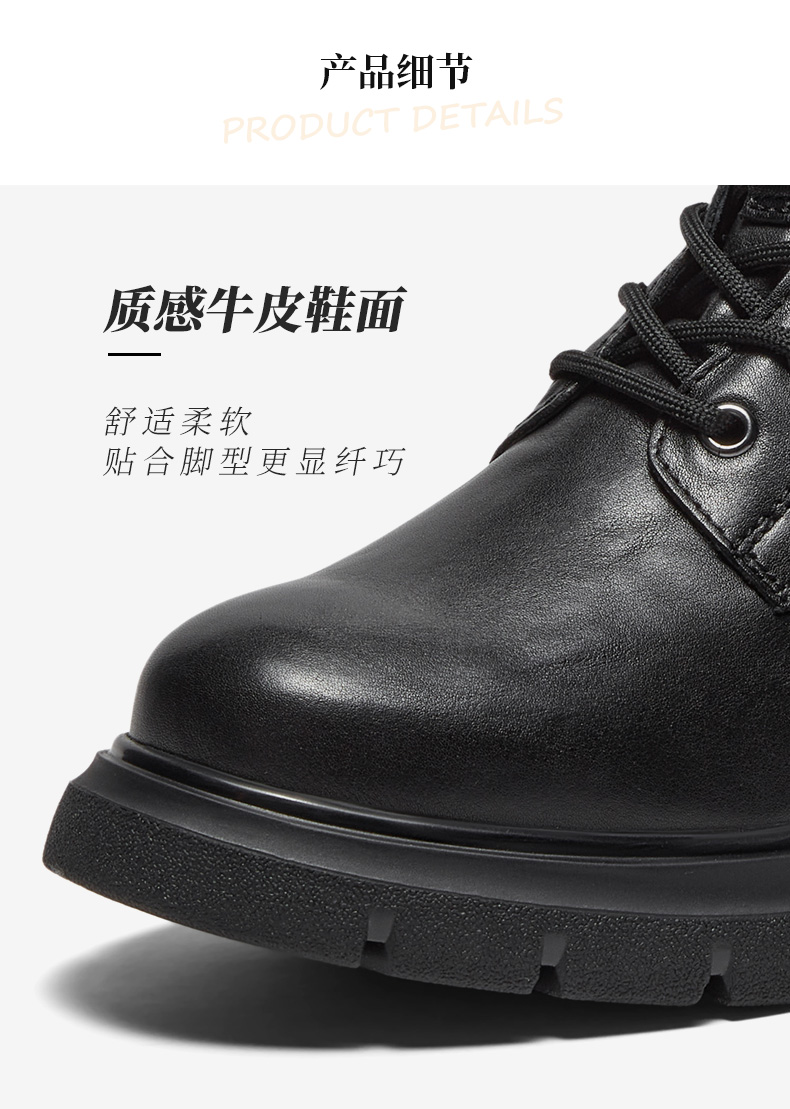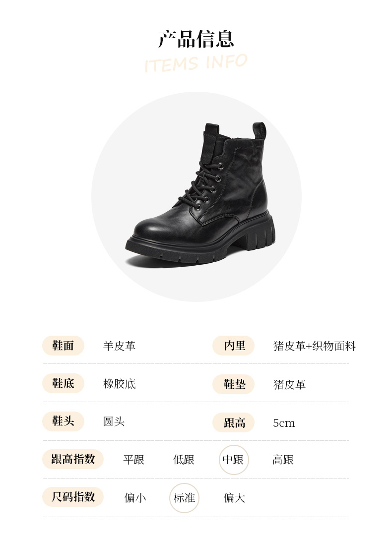 | 帮面材质:牛皮革 | 配跟:无 | 靴筒口围:26CM | 上市时间:2025年冬季 | 鞋类流行款式:马丁靴 |
