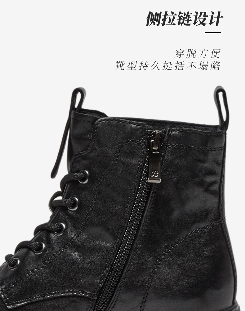 | 鞋底材质:发泡底 | 靴筒内里材质:织物面料猪皮革 | 内增高:无 | 鞋面材质:牛皮革 | 闭合方式:侧拉链 |