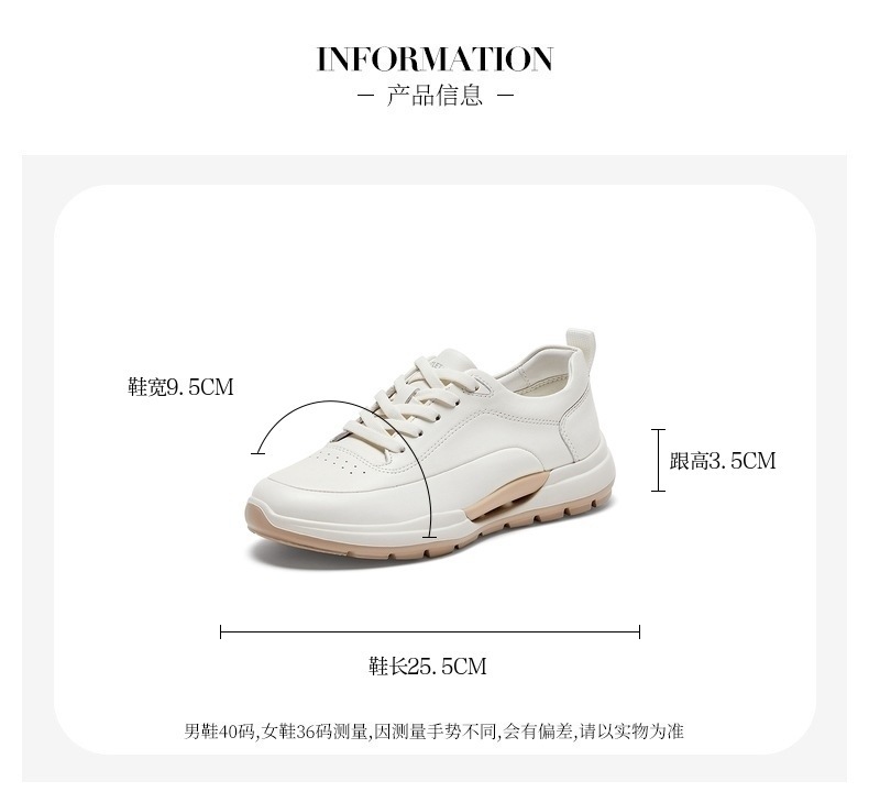 | 参考鞋宽(女):9.5CM | 风格:休闲 | 色系:白色 | 参考标准尺码:36码 | 跟高数值:3.5CM |