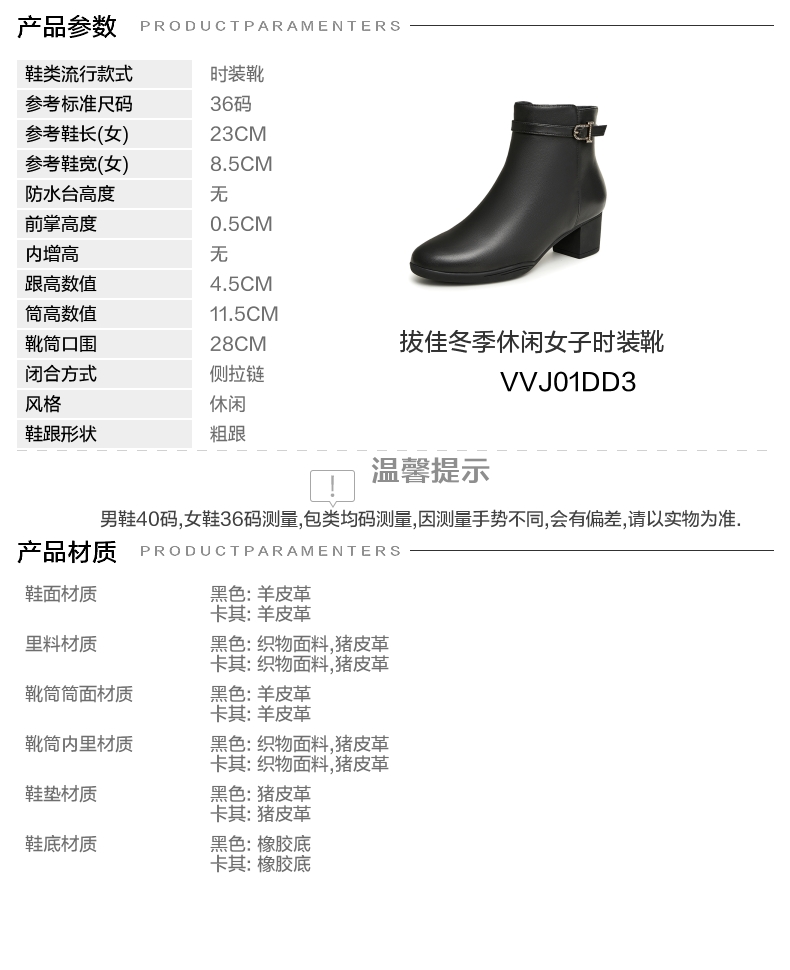 | 鞋底材质:橡胶底 | 靴筒内里材质:猪皮革织物面料 | 内增高:无 | 鞋面材质:羊皮革 | 适用场合:日常休闲 |